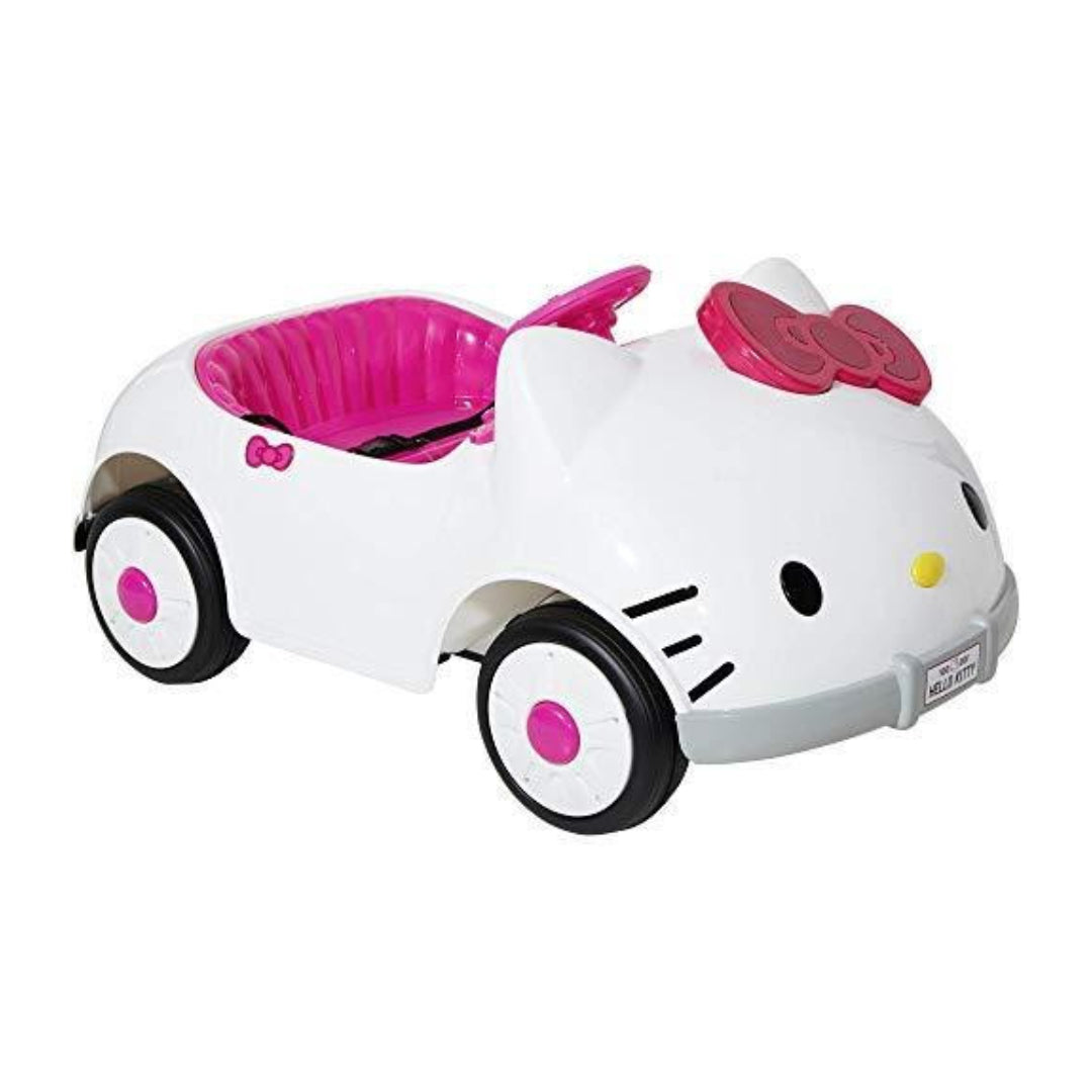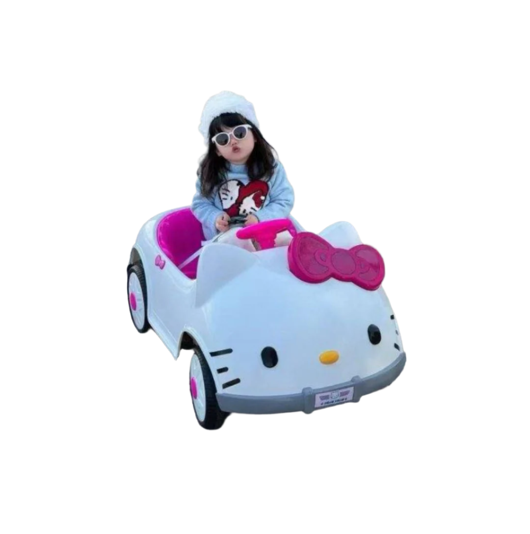 Shaped like the popular character, the dynacraft hello empty kitty 6v battery powered ride on car is a super-cute and super-fun vehicle for kids. Featuring a custom body style, this stylish set of wheels includes the full hello kitty face in the front and a hello kitty embossed steering wheel with working sounds. An mp3 cord and speaker allows riders to cruise along to their favourite tunes in style and high-quality sound. The dynacraft hello empty kitty car is decorated with adorable colours and details to shine as it moves along at a safe speed of 2. 5 Miles per hour. The ride-on features hello kitty's signature bow that lights up for an added touch of fashion. The dynacraft hello empty kitty 6v kitty car offers one speed and can run up to one hour at a time on a full battery charge. The vehicle's contoured, comfy seat and adjustable play seat belt offer peace of mind to parents. Features: " number of speeds: 1 top speed: 2. 5 Mph custom body style hello kitty embossed steering wheel working sounds mp3 cord and speaker contoured, comfy seat adjustable play seat belt assembly required 6v battery included charge time: 8 hours run time: 60 minutes weight limit: 30 kgs assembled dimensions: 43. 00 X 25. 00 X 20. 50 Assembled weight: 13 kgs age range: 3 years and up.