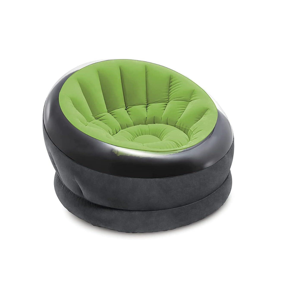 The Intex Empire Chair (Model 68582) is a stylish and comfortable inflatable chair designed for both indoor and outdoor use. It features a modern design with a transparent trim and comes in three vibrant colors: green, pink, and orange. The chair is made with a soft, waterproof flocked surface on the top and sides, while the reinforced 2-ply vinyl bottom adds extra durability. Its contoured shape provides excellent support, making it ideal for lounging, gaming, or simply relaxing. An additional chamber can be filled with water to keep the chair stable, ensuring a secure seating experience. With dimensions of 112 cm in length, 109 cm in width, and 69 cm in height, it offers a spacious and cozy feel. The chair can support up to 100 kg and is easy to inflate and deflate, making it a convenient option for those looking for a portable and stylish seating solution. However, an air pump is not included and must be purchased separately.