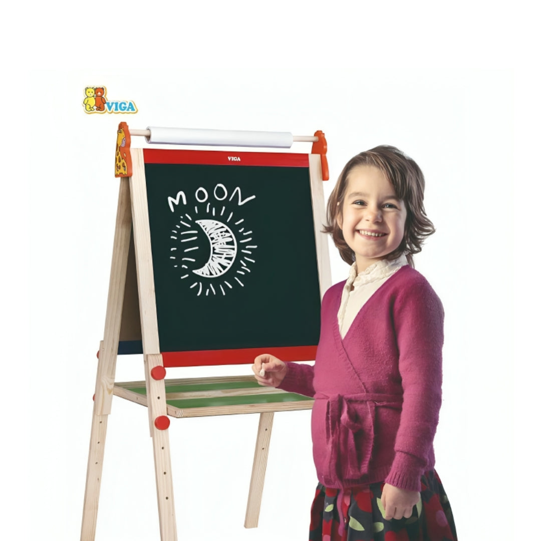 A multiple functional wooden easel is great for learning and being creative. Whether your kids love painting, writing on board or marking things with marker, this double-sided kid’s art easel will delight your little artist.
