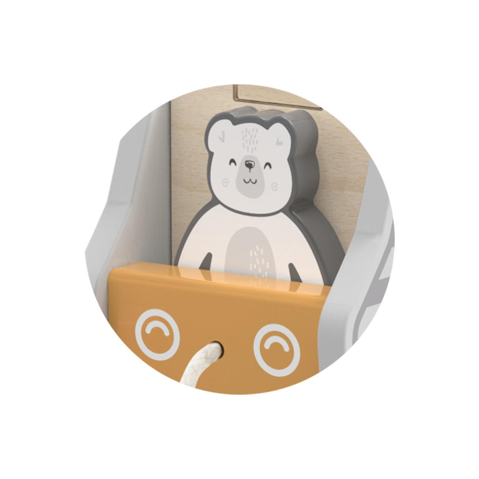 Polar B Pull Along Shape Sorting Truck by Viga Toys is a wooden pull along shape sorting truck. Toddlers can fit various wooden shapes through the matched holes, then open the lid & take them out to start again. This toy is great for learning the basic shapes and numbers.