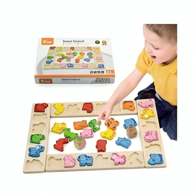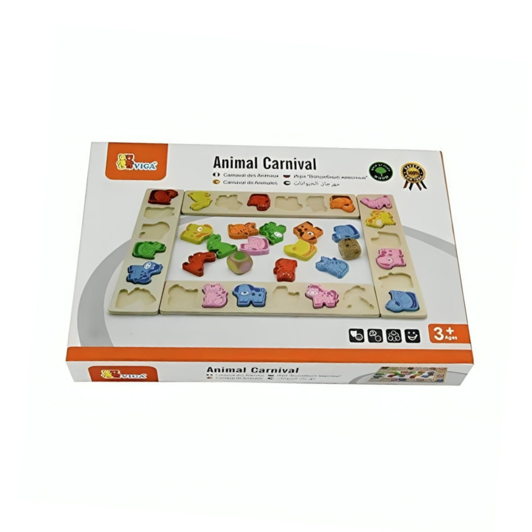 This game consists of 4 panels, 36 animal pieces and 2 dice. A great game to help improve a child's ability to recognize shapes, colors and animals. Stimulates quick reactions and team work. There are 5 different ways to play this game bringing extra value for kids. Game guide also included.