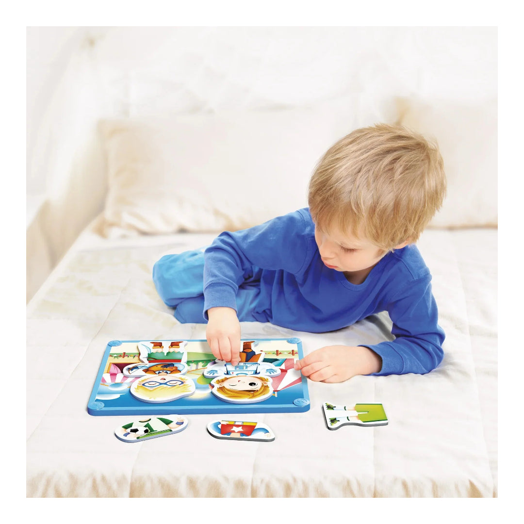 A fun magnetic puzzle for mixing ever-changing different characters on the board. It stimulates creativity and imagination.