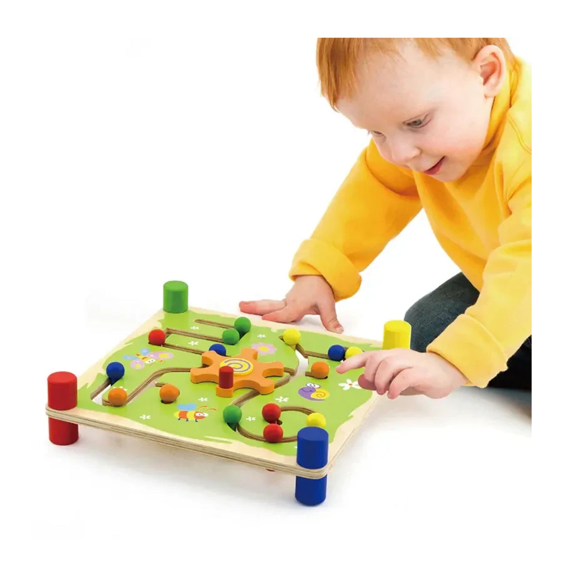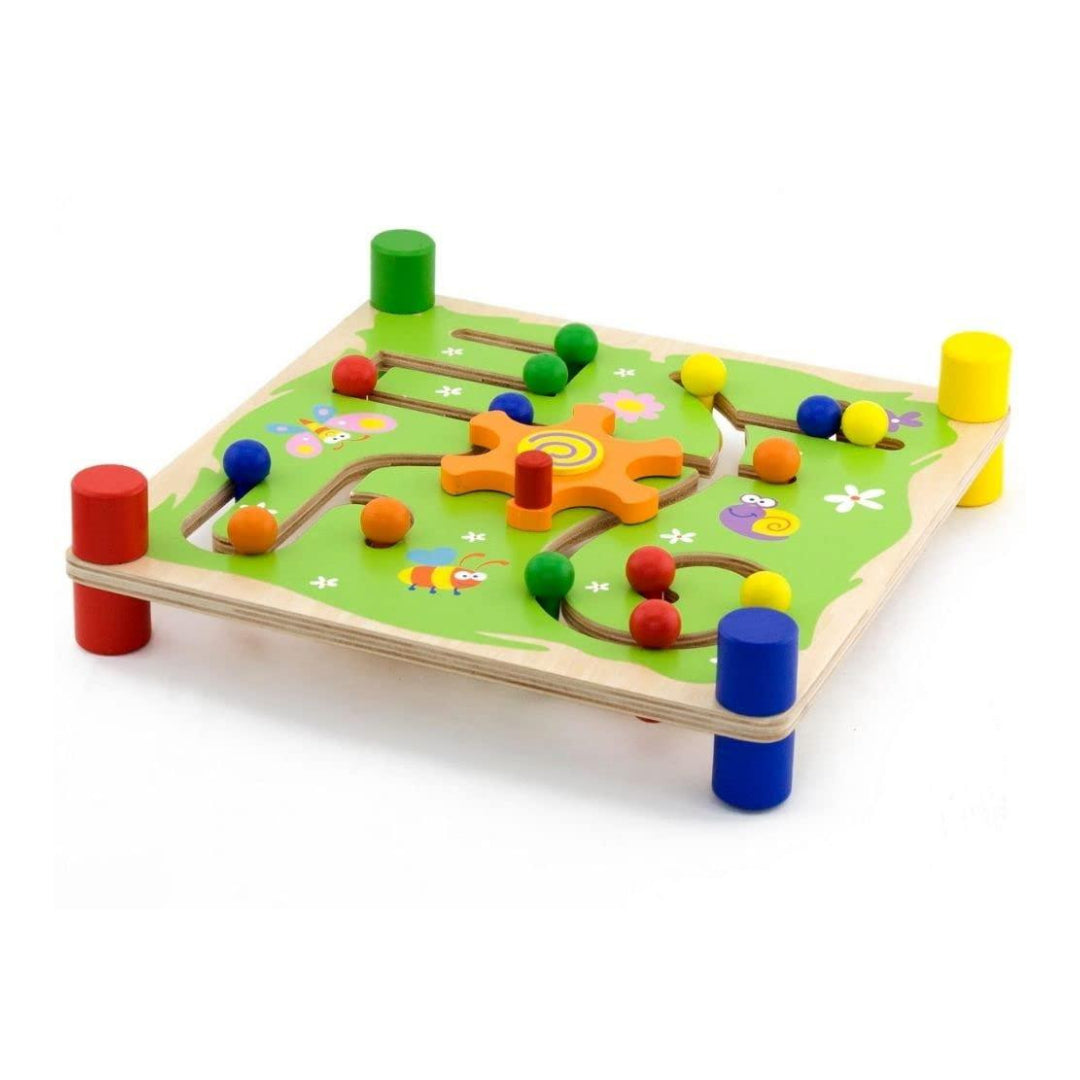 - The fun consists in moving the array of colourful pegs along the maze to set them all in accordance with the pattern shown on the 6 reference cards.