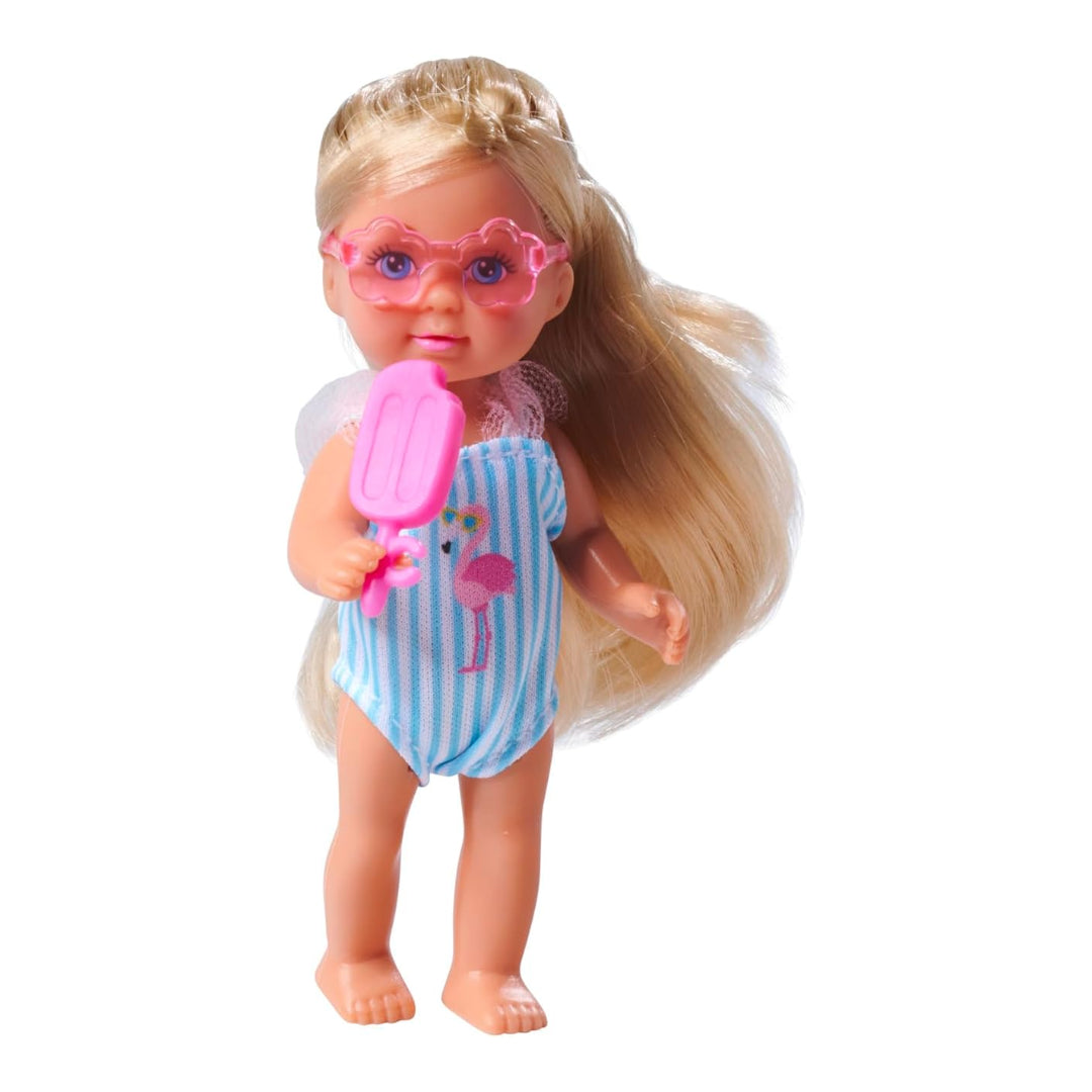 Evi Love Travel, 2 Assortments, Only One Item Delivered, Toy Doll in Rolling Suitcase, Wears a Ruffled Swimsuit, Includes Sunglasses and Ice, 12 cm, Ages 3+
