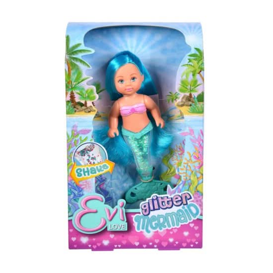 Evi has become a mermaid and swims around in the water! She has been given a nice movable fin that is filled with glitter.