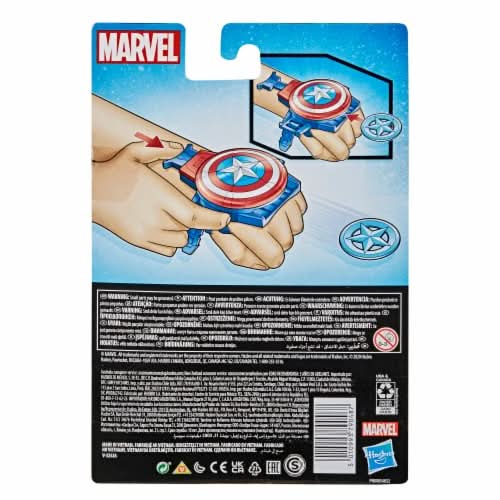 Marvel captain America movie inspired gear: inspired by the marvel cinematic universe that includes avengers: infinity war and avengers: endgame movies. marvel role play for kids ages 5 and up can join the exciting marvel role play action and adventure enjoyed by fans and collectors boys and girls can wear these on their hands and imagine themselves saving the world! pops out for battle action that can be repeated again and again. wear a shield like captain America's heroes in training can wear the star of the first avenger, too! captain America gear can be worn on the hand for blasting discs at imaginary villains like Thanos from the marvel universe.