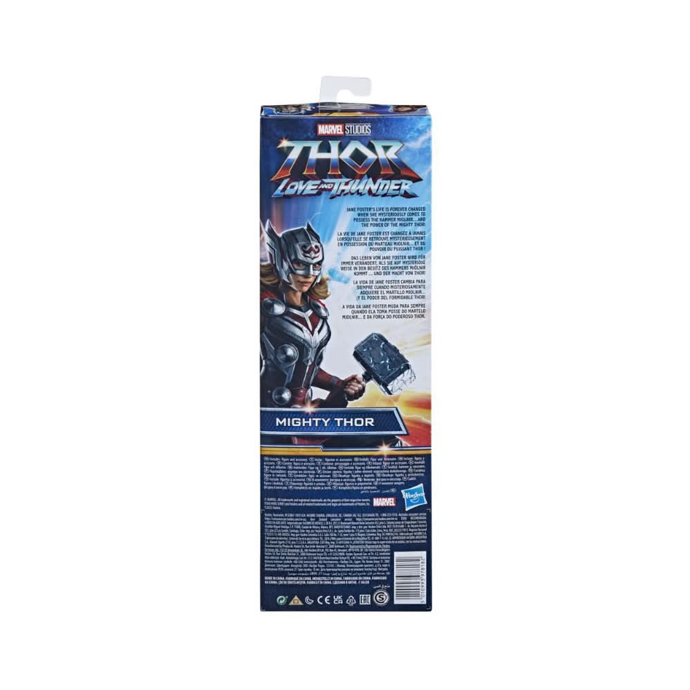 Jane Foster’s life is forever changed when she mysteriously comes to possess the hammer Mjolnir… and the power of Mighty Thor! Unleash the power of the Marvel Universe with the Marvel Avengers Titan Hero Series Thor: Love and Thunder Mighty Thor action figure! Kids ages 4 and up can imagine mighty action and adventure with this 12-inch-scale action figure, inspired by Thor: Love and Thunder, part of the Marvel Cinematic Universe. Featuring movie-inspired design and detail, as well as multiple points of articulation for poseable fun, boys and girls will love pretending to defend the universe with this large-scale Mighty Thor toy!