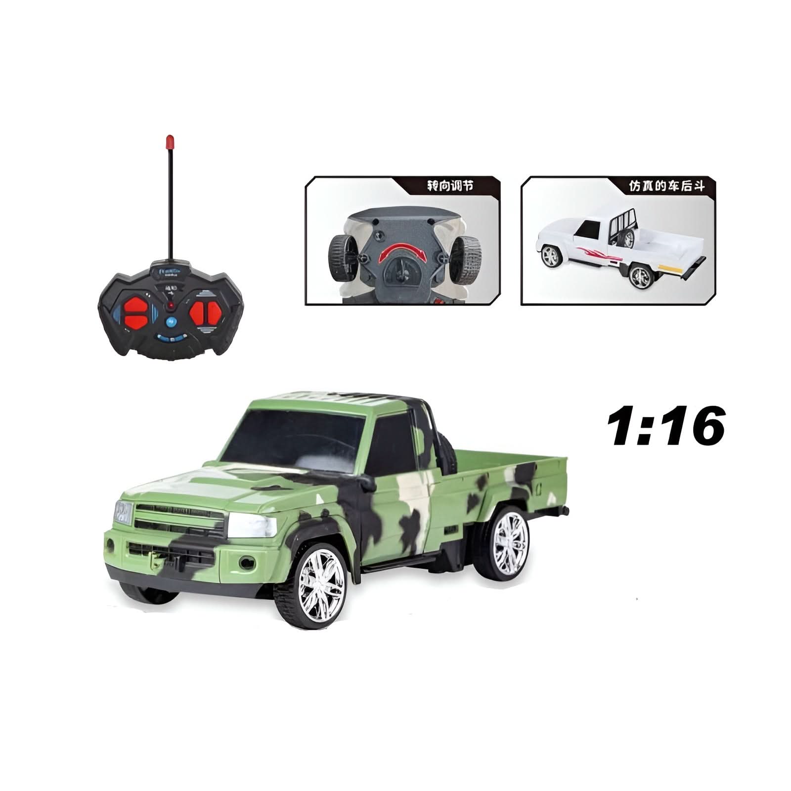 "Remote Control Military Truck 1:16. Spark your child's sense of adventure with the 1:16 Remote Control Military Truck, an exciting and robust toy that will provide hours of fun! Ideal for children aged 3 and up, this miniature vehicle is inspired by military trucks, with a camouflage design that brings realism and action to play. Features: Easy-to-Use Remote Control: Allows full control of the truck, including steering forward, backward, left and right. Scale 1:16: Ideal size for handling and viewing details.