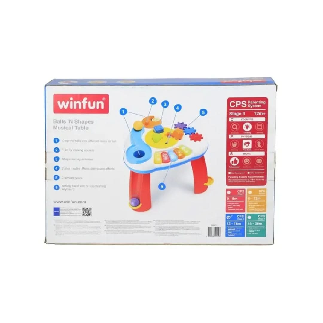 2 Modes of play - music and sound effects. -Drop the balls in different holes to hear fun sounds and develop motor skills. -13. 54. H x 15. 75. W x 14. 25. D, 3. 97 Lbs. Includes - -3 colourful balls, 3 shape sorter pieces and 1 plastic hammer included. -3 Aa batteries included.