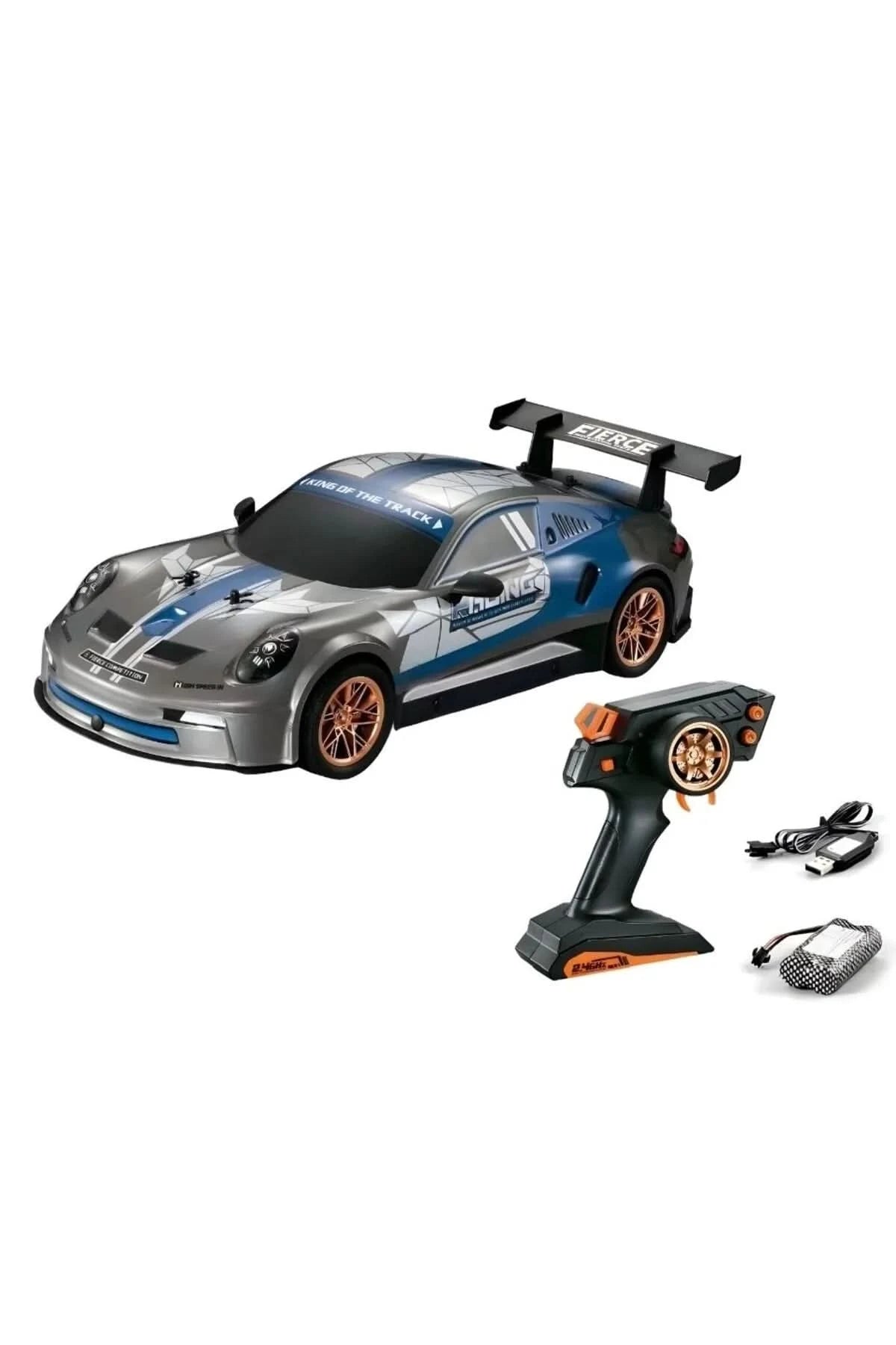 This remote controlled rechargeable fast toy car provides children with an enjoyable and exciting playing experience. The car which can move quickly thanks to its high speed engine, will attract children's attention and offer them adrenaline filled moments. The car, which can be easily controlled with its remote control, allows children to move in the direction they want. Full Function forward, backward, right, left, 1:10 Scale 25 km/h, R/C Wireless 2.4GHz Illuminated Car, 7.4V Battery included. The remote control is powered by 2×1.5V AA batteries are not included. Car Length: 46 cm Box size: 57x24x19.5 cm. Age: 6+