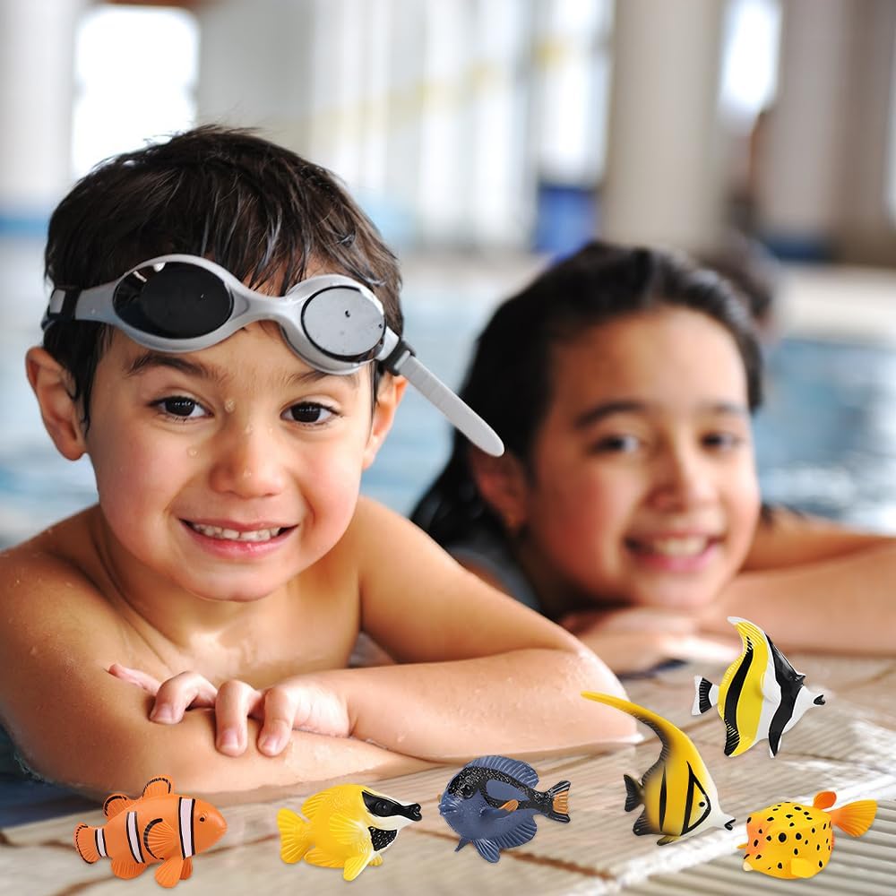 The "Tropical Fish" play set from the Junfa brand is designed for children who are interested in the diverse fauna of our world. The set includes bright and colorful figures of tropical fish. Using their imagination, a child can be transported to where the fish live: to coral reefs in warm ocean waters. Realistic elaboration and coloring make the fish look natural, they are made of polymer material that is safe for children. The figures can be used in various role-playing games. The set can attract the attention of little collectors of fauna. Fish sizes: 1 fish (yellow with black stripe and pattern): 4.7x1.9x6 cm. 2 fish (blue with black): 6.3x3.5x3.7 cm. 3 fish (yellow with black spots): 5.8x3.5x3 cm. 4 fish (orange with white stripes): 6x2x3.7 cm. 5 fish (yellow, with black and white head): 5x2.2x3 cm. 6 fish (striped black, white and yellow): 5x1.6x5.3 cm. Completeness: tropical fish – 6 pcs. Material: polymer material.