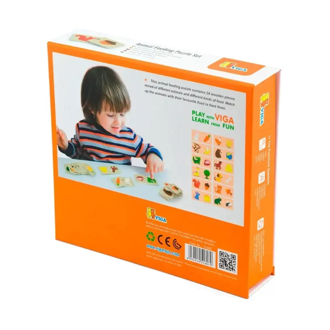 Introduce your little ones to the world of animals and food with the Viga Animal Feeding Puzzle Set! This wooden puzzle set includes 24 different animal and food pieces that your child can match up to feed the animals. It's a fun and interactive way to develop your child's vocabulary, concentration, motor skills, and logical thinking. The pieces are made of high-quality wood, ensuring durability and safety for your child. Plus, the set comes with a magnet flip box for easy storage and to keep the pieces organized.