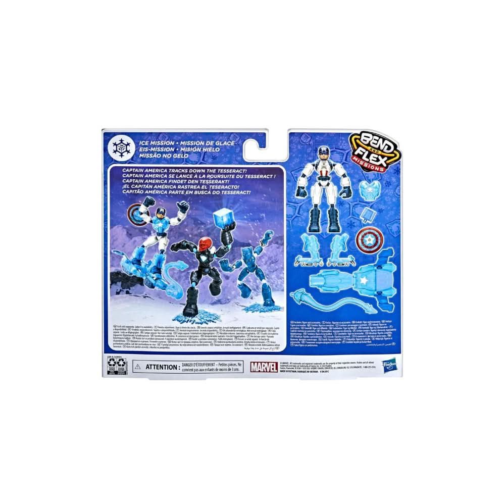 Captain America and Black Panther track down the Tesseract after it’s stolen by Red Skull! Amusing Avengers action and adventure await with the Marvel Avengers Bend and Flex Missions action figures! Avengers Bend and Flex Missions take the most powerful Super Hero team in the world and drops them into zany missions set in themed locales, complete with awesome gear and accessories. The fun, stylized figures let kids ages 4 and up imagine pulse-pounding pursuits and bold battles with bendable, flexible versions of their favorite Avengers Super Heroes and villains. Avengers Bend and Flex Missions toys are kid-friendly and make a great introduction to the Marvel Universe for boys and girls. (Each sold separately. Subject to availability.) This 6-inch-scale Marvel Avengers Bend and Flex Missions Captain America Ice Mission toy is designed to look like the iconic hero character from the Marvel Universe.