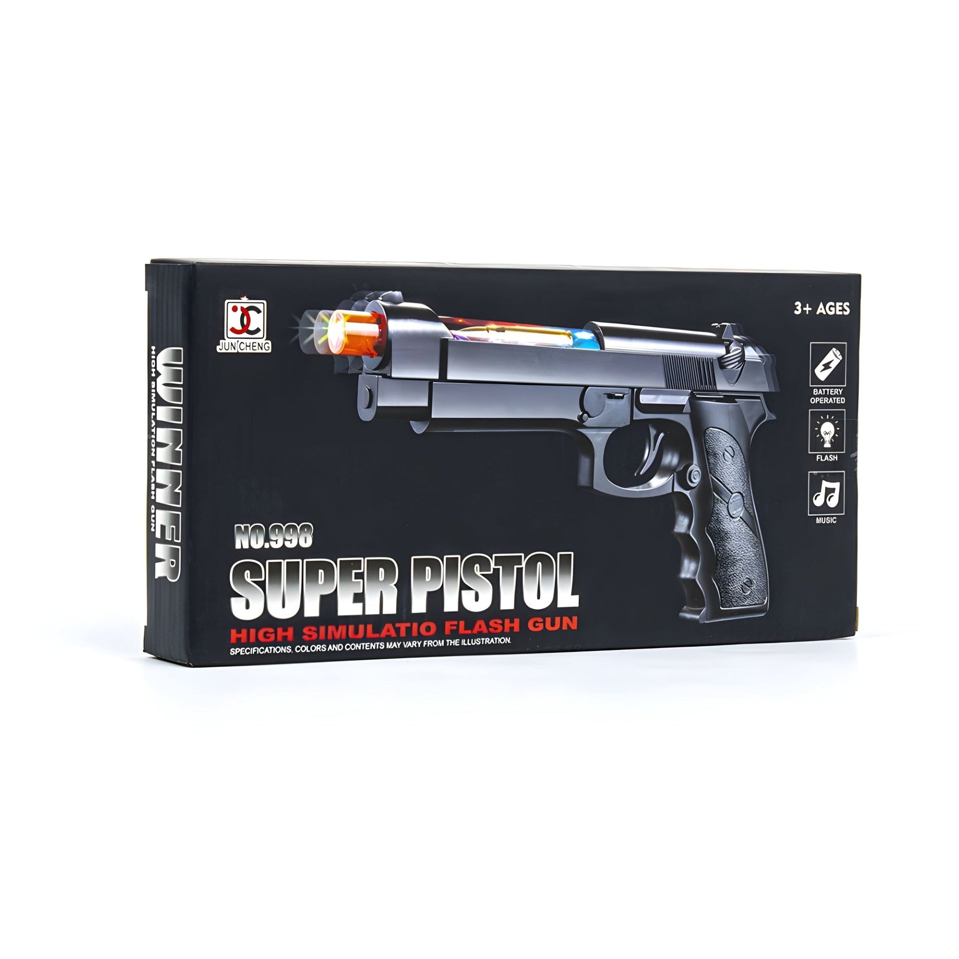 This gun is distinguished by its large size, which makes it prominent and eye-catching, adding a touch of realism and excitement to the playing experience. This sound gun features fun and realistic sounds when the trigger is pulled, which adds excitement and excitement during play. Children can use it to play imaginatively, such as pretending to be police or superheroes, and they can also organize chase and adventure games with friends. Ages: 3+
