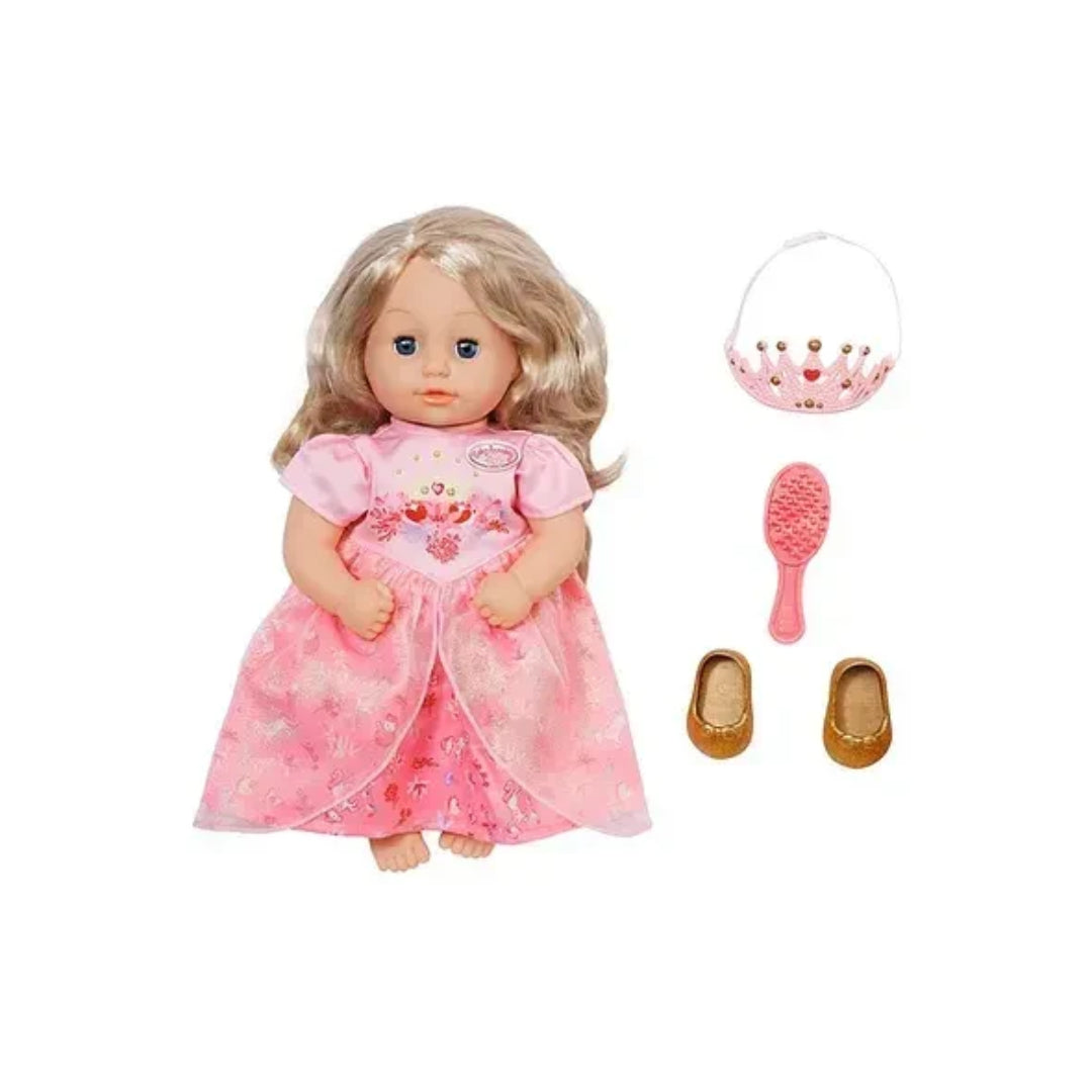 The Baby Annabell Little Sweet Princess 36cm (ZPF-703984) is a charming doll designed to captivate young children with its delightful features and accessories. Standing at 36 centimeters tall, this princess-themed doll is dressed in a beautiful pink gown adorned with sparkly details, complemented by a matching tiara and shoes. Her soft body makes her perfect for cuddling, while her realistic features, such as sleeping eyes that close when she lies down, enhance imaginative play. The doll's size is ideal for children aged 1 and up, promoting nurturing behavior and role-playing skills.