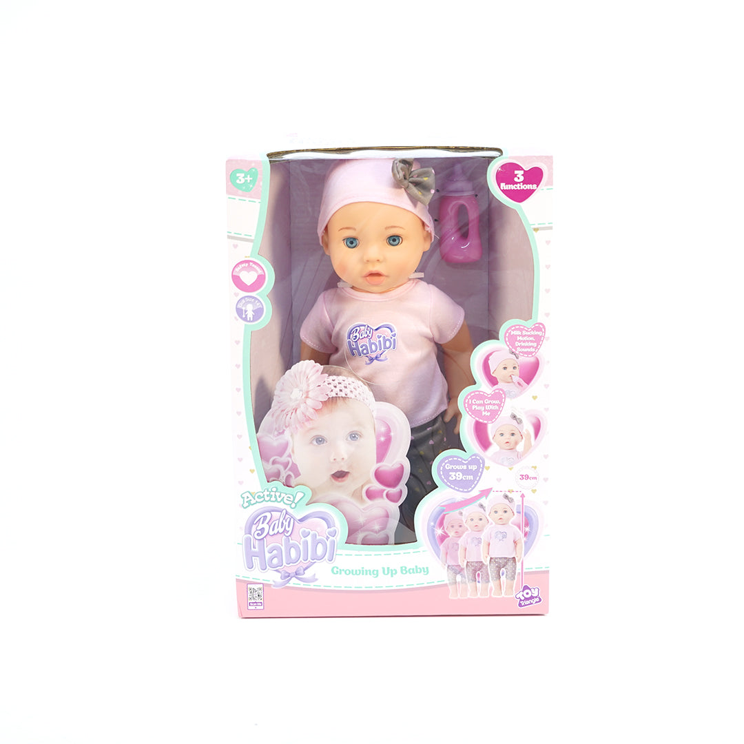 Baby Habibi 14inch Doll Growing Up Baby is the perfect companion for nurturing and imaginative play. With its lifelike design, realistic facial features, and soft body, this doll is sure to capture the hearts of children. Watch as the doll grows up to 39 cm and then shrinks back down, providing a unique and interactive experience. It can even drink milk with a sucking motion and sound, adding a touch of realism to playtime. Made of high-quality materials for durability, this doll comes with a variety of accessories for endless hours of fun. Let your child's creativity flourish with Baby Habibi 14inch Doll Growing Up Baby.