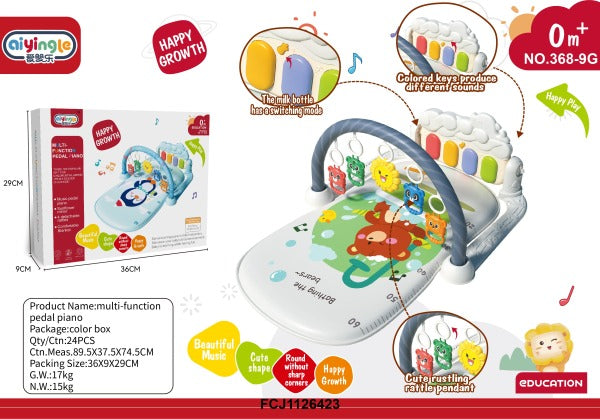 This bright rug for the little ones will be a great helper in the early development of the child, because it has a variety of toys that will stimulate the audiovisual and tactile perception of the baby. The rug comes with a set of bright rattles-pendants, as well as a piano, which will open the magical world of music for the child. Features: - rug dimensions: 72x44 cm; - arc height: 46 cm; - the rug comes with five rattles-pendants; - the piano can be either part of the rug structure or be a separate toy; - the piano has a backlight and several operating modes in which it plays individual notes to whole melodies; - the piano is powered by three AA batteries (not included). Dimensions / dimensions - Length (cm): 72
