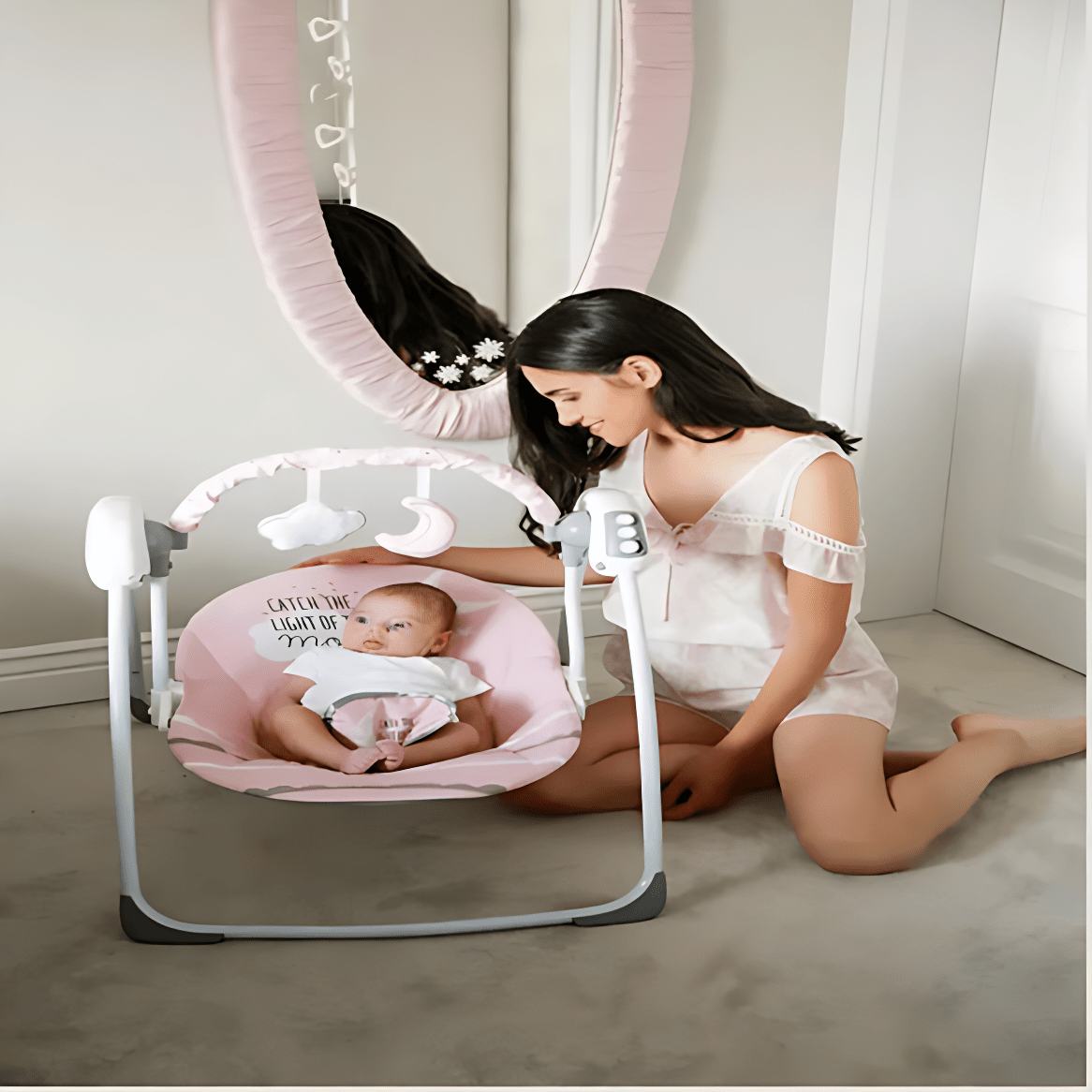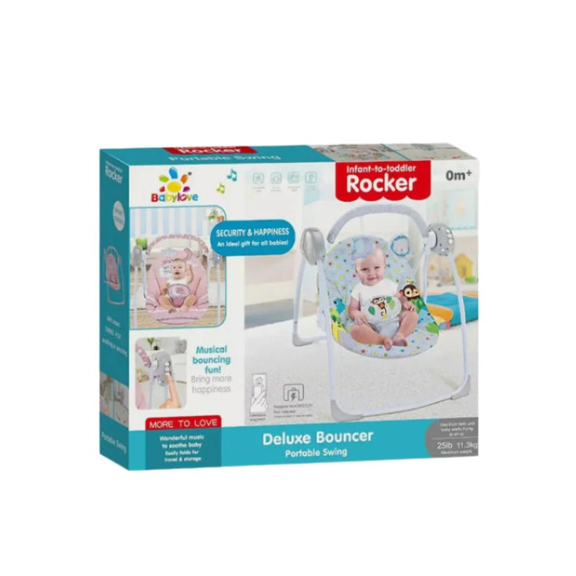 Fitchbaby portable swing deluxe bouncer is a comfortable bouncer which soothes the baby's resting or sleeping time. This swing has different modes like calming music with melodies and natural sounds and comfortable warming swing to sooth the baby and release away bad mood. Your munchkin will enjoy playing with the hanging plush toy on the bar. This swing will accompany the baby to grow up happy.