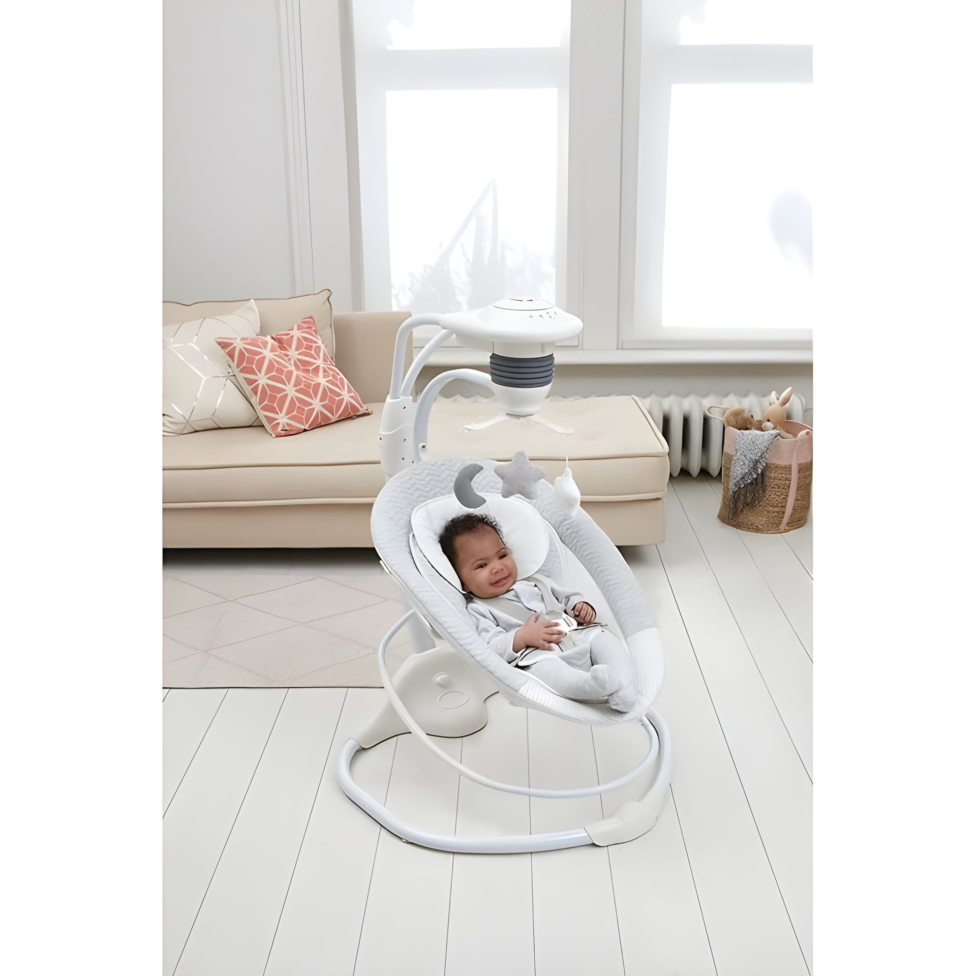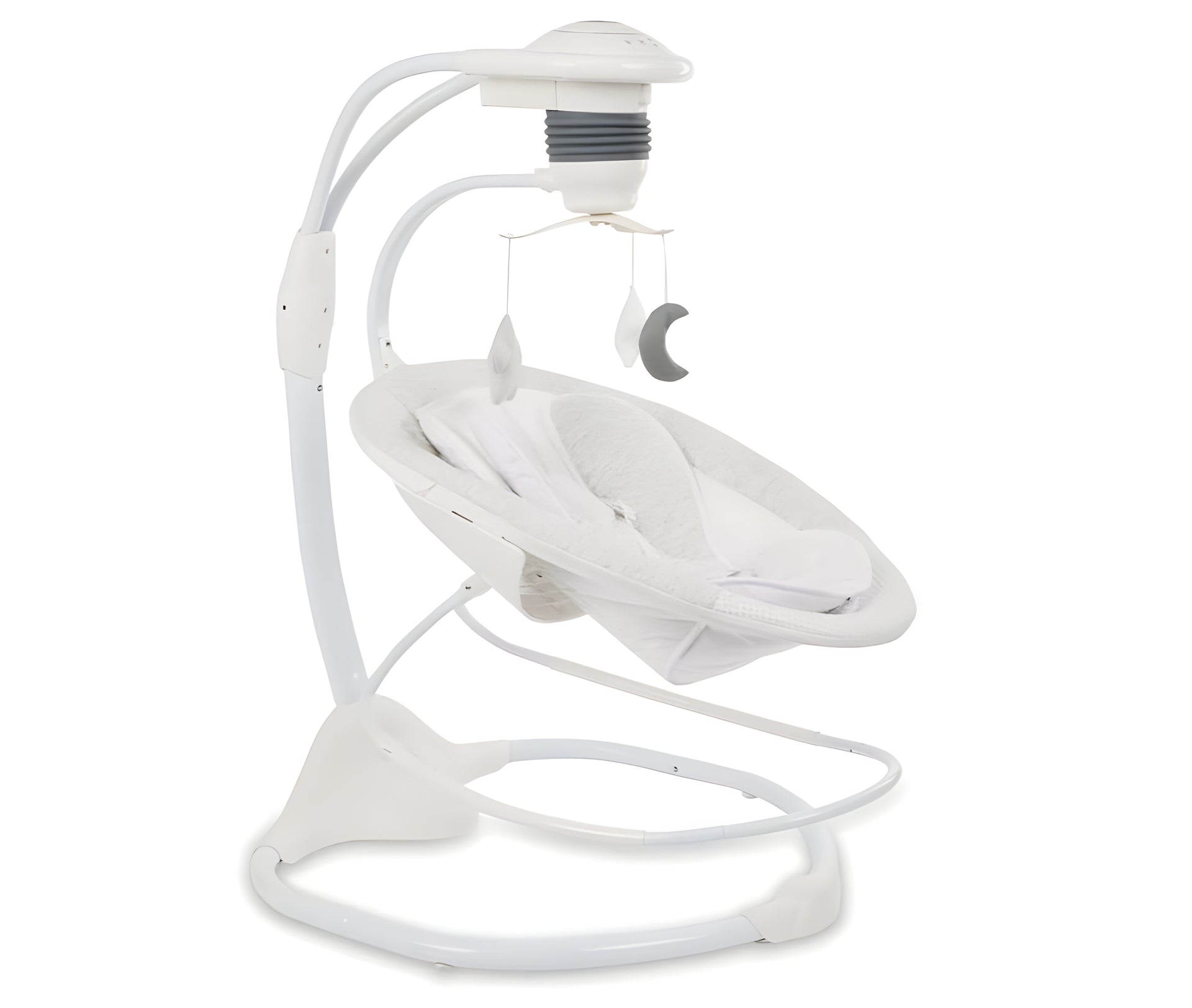 This 2-in-1 baby swing and rocker converts effortlessly from a soothing swing to a rocking seat and features six tunes and a rotating toy bar to entertain your little one. The deep, soft plus seat has a body support to create a comfy, cozy space for your little one to rest right from birth. Your baby will love to swing gently in a head-to-toe motion and with three swing speeds you can customize the swing to however your baby likes best. If your baby prefers, simply detach the seat unit and use the 2-in-1 swing as a rocker chair. Your baby will be entertained as they swing or rock with the toy bar which has three plush hanging toys which gently rotate and the six songs which can be set on two timer settings.