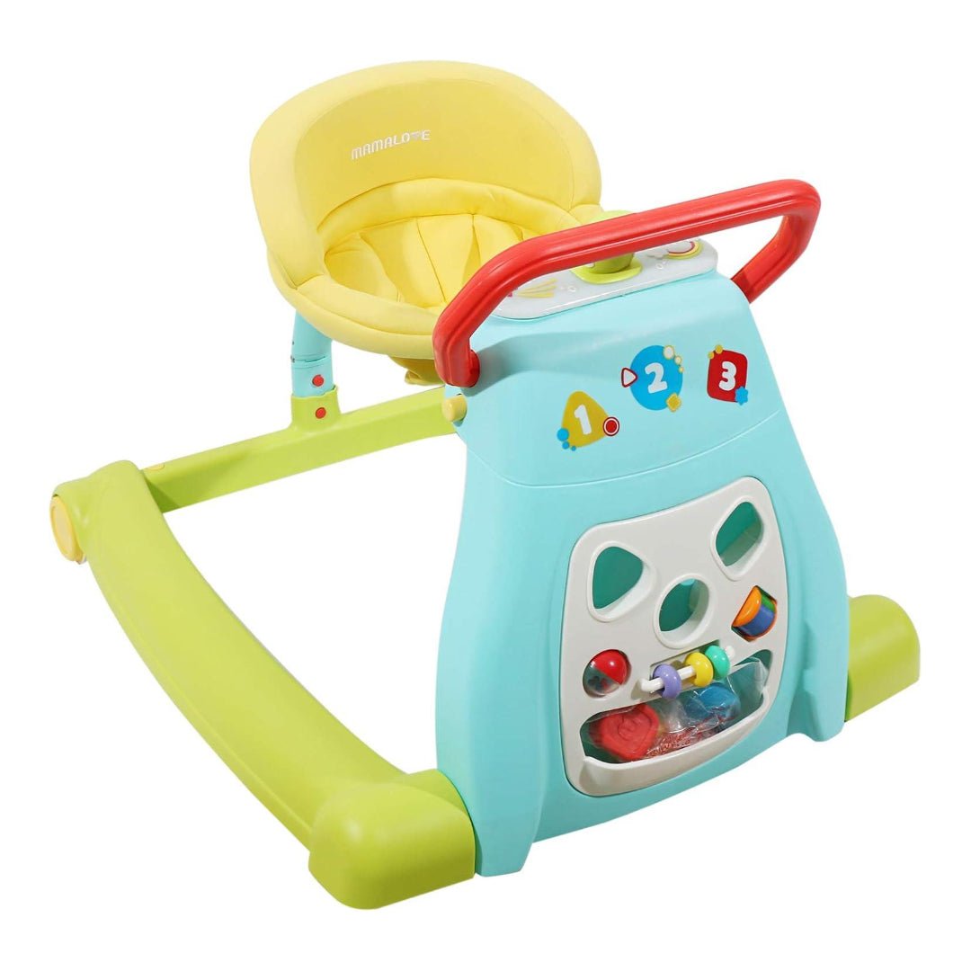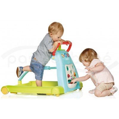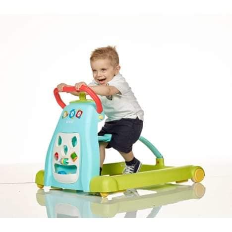 The "Boo" baby walker by "Brevi" is suitable for babies over 6 months and is an indispensable assistant for your child in his first attempts to take steps. It combines 4 functions in one product - a walker, an active play center, a pushchair and a riding stroller. For babies over 6 months, it is used as a walker with a soft seat that can be adjusted in height in 2 positions. The seat can be removed and washed in a washing machine at 30°. The walker is equipped with 6 legs with non-slip tips, brakes and impact-resistant edges for maximum protection. For the child's entertainment, a panel with musical and light functions is provided, which stimulate the child's auditory and visual perceptions. The active center stimulates tactile and cognitive development and helps develop coordination. After the child turns 9 months old, you can remove the seat and the walker quickly and easily transforms into a pushchair. It helps the child take his steps carefully while holding onto the handle. It is height-adjustable and allows the child to feel confident in his first steps while holding steady. After the child turns 18 months, you can use it as a riding stroller. In its front part there are various activities that keep the child busy and stimulate his senses - a spinning roller, a ball, cubes and more. The walker can be easily folded to compact dimensions.