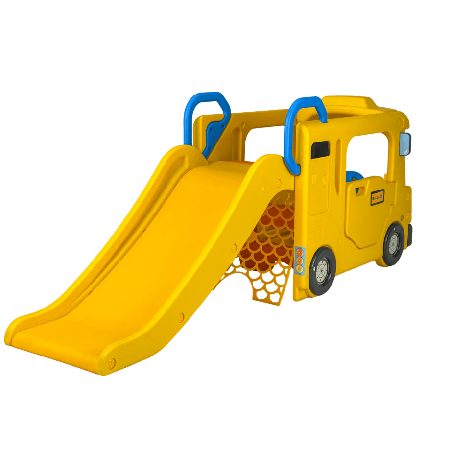 Enjoy a fun bus with a slide for kids, where children can slide and play inside this bus in an enjoyable and entertaining way.