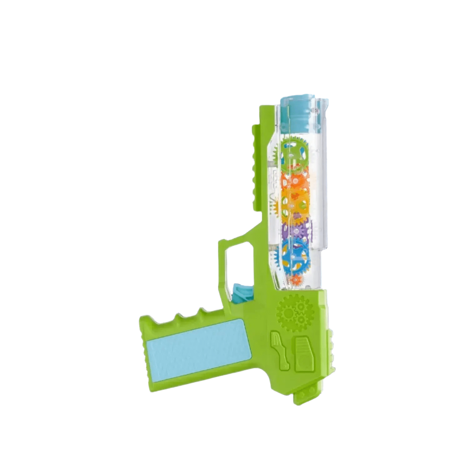 A bright model of a toy gun with an unusual design. The main feature of the toy is a transparent case that opens a complex mechanism with colored gears. When the trigger is pressed, the body starts to light up, and the gears start to rotate. But that's not all! The gun emits the characteristic sounds of a shot and the projection of the target is played. An interesting toy will definitely appeal to little ones and will become a favorite for a long time. Projection of the target with the robot, all effects are powered by 3 AA batteries not included. Product dimensions: 28.5 x 5 x 19.5cm. Age: 3+