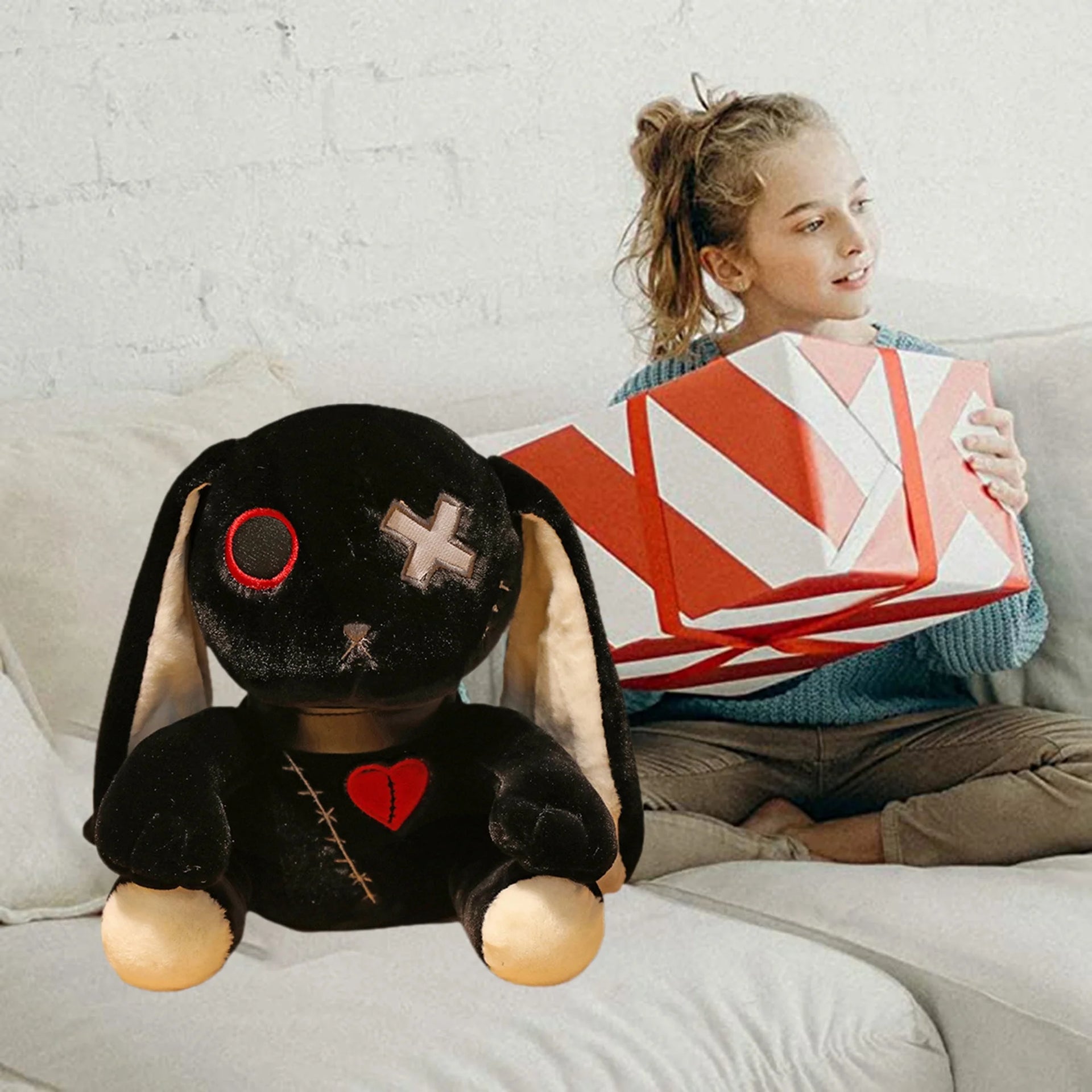 This spooky goth plush bunny combines a striking black and pink color scheme with an adorable scrump style, perfect for collectors and fans of gothic aesthetics. A standout addition to any plush collection. Crafted from ultra-soft materials, this plush bunny offers unmatched comfort. It's perfect for cuddling, making it an ideal companion for relaxation and emotional support. Ideal for Halloween, Easter, or any occasion, this lovely bunny plush makes a thoughtful gift. Its unique appeal ensures that it will be cherished by recipients of all ages.