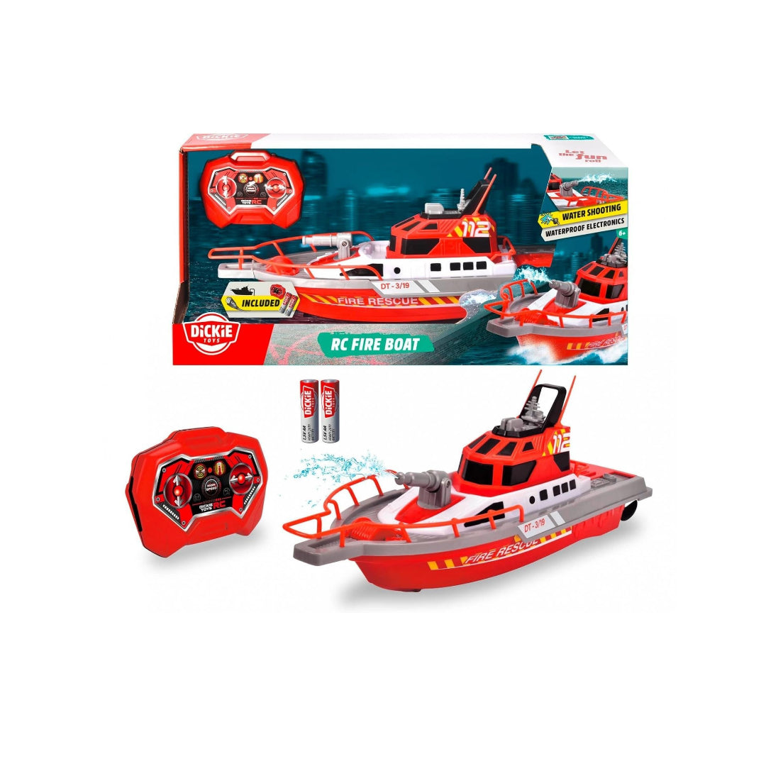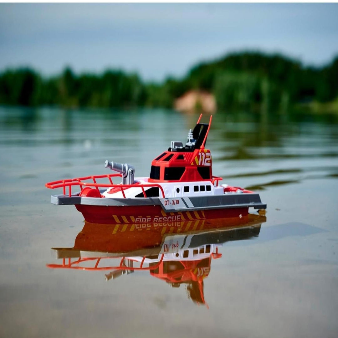 Water Spray Function: Equipped with a built-in water cannon that draws water directly from its surroundings, eliminating the need for a separate tank. This feature can be controlled via the waterproof remote control, allowing children to simulate real firefighting scenarios.User-Friendly Remote Control: The 3-channel, 2.4 GHz remote control is designed for ease of use, enabling movement in all directions—forward, backward, left, and right. Its waterproof design ensures durability during aquatic adventures.