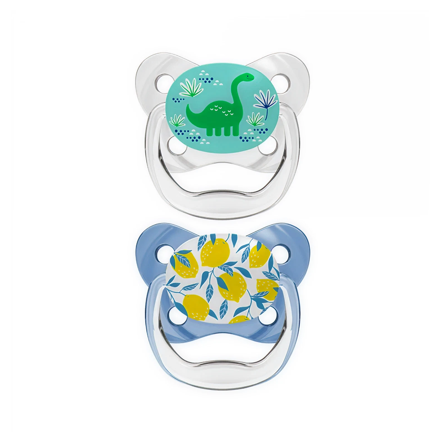 Safe soothing has never been smarter! Dr. Brown's Prevent Pacifiers are as adorable as they are effective. Designed by a paediatric dentist, the 100% silicone bulb features a patented suction-free air channel and thin bulb stem that reduce pressure inside baby's mouth, helping prevent dental issues such as posterior crossbite down the road. Prevent Pacifiers have a size for most ages, ranging from 0m to 18m. The bulb is taste-free, odourless, and keeps its unique shape over time. , , The Contoured Shield curves away from baby's face to reduce the risk of pacifier rash on little cheeks and noses. Prevent Pacifiers are easy to clean and are dishwasher (top rack) and sterilizer safe. Electric sterilization and boiling water only do not sterilize baby pacifiers in the microwave