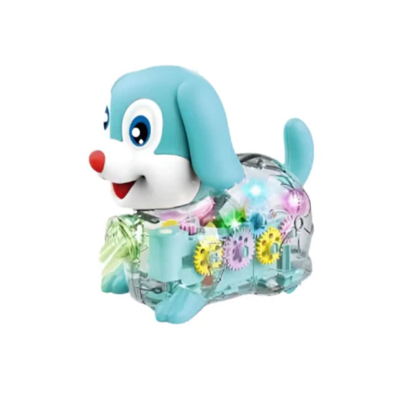 The gear dog is a transparent glowing gear toy that will attract children's attention. When moving, the dog glows with multi colored lights and all the moving gears and parts are visible inside it. Bright lighting and sound accompaniment look especially impressive in the dark. The toy is powered by three AA batteries not included.
