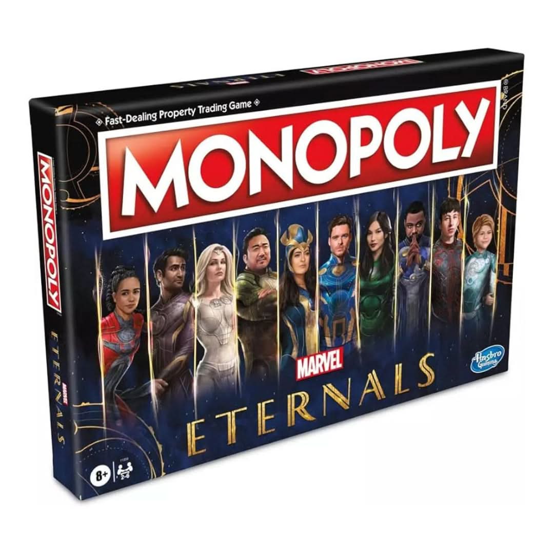 In this Monopoly Board Game: Marvel Studios' Eternals Edition, players travel around the board safeguarding as many properties as they can. The more they safeguard, the more rent they can collect from fellow Eternals in the form of cosmic energy units. Players get to choose from one of the 10 Monopoly Eternal tokens, each with a unique Super Hero ability that can change the course of the game. The last player to have cosmic energy units when all other players have depleted theirs wins! The game makes an awesome gift for kids ages 8 and up. Copyright (c) 2021 MARVEL. All trademarks and registered trademarks are the property of their respective owners. The Hasbro, Hasbro Gaming, Parker Brothers, and Monopoly names and logos, the distinctive design of the gameboard, the four corner squares, the Mr. Monopoly name and character, as well as each of the distinctive elements of the board and playing pieces are trademarks of Hasbro for its property trading game and game equipment.