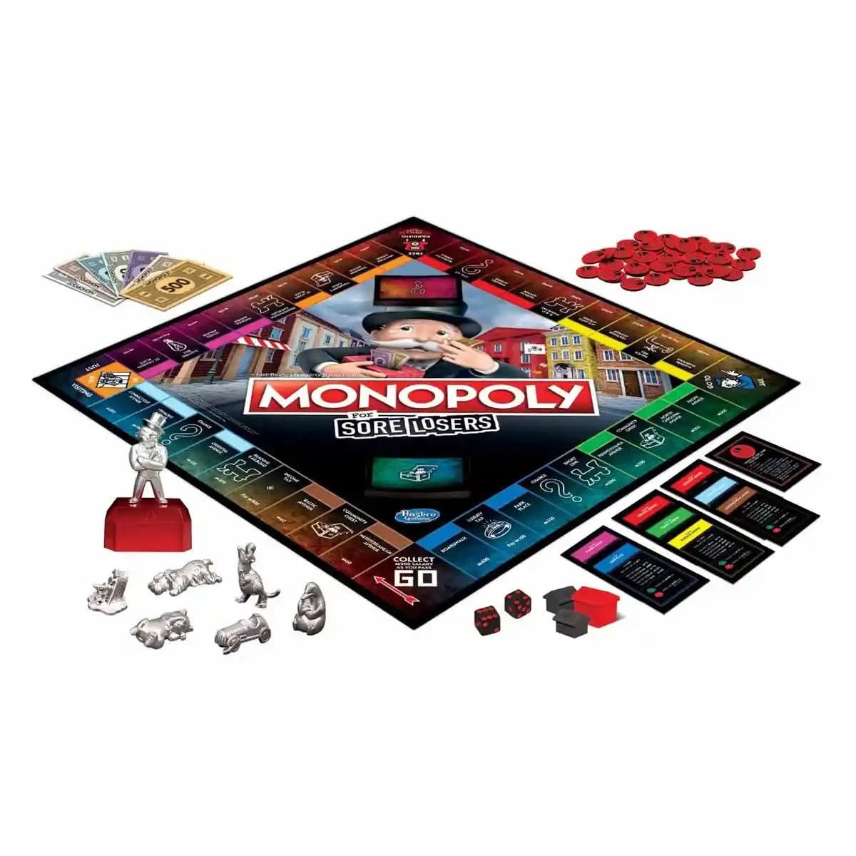 Don't get sad…get even! Say goodbye to the frustration of losing while playing Monopoly, and say hello to the Monopoly For Sore Losers board game. This hilarious twist on the Monopoly game turns losing on its head and celebrates it instead. Players earn cash by doing the typically frustrating things in the game such as going to Jail, paying rent on a property, or going bankrupt. And those who really start sinking can make a comeback using the large Mr. Monopoly token that gives players advantages over everyone else. So get playing, get the revenge you've been craving, and feel good about losing! Family Game Night might never be the same again with this game for ages 8 and up.