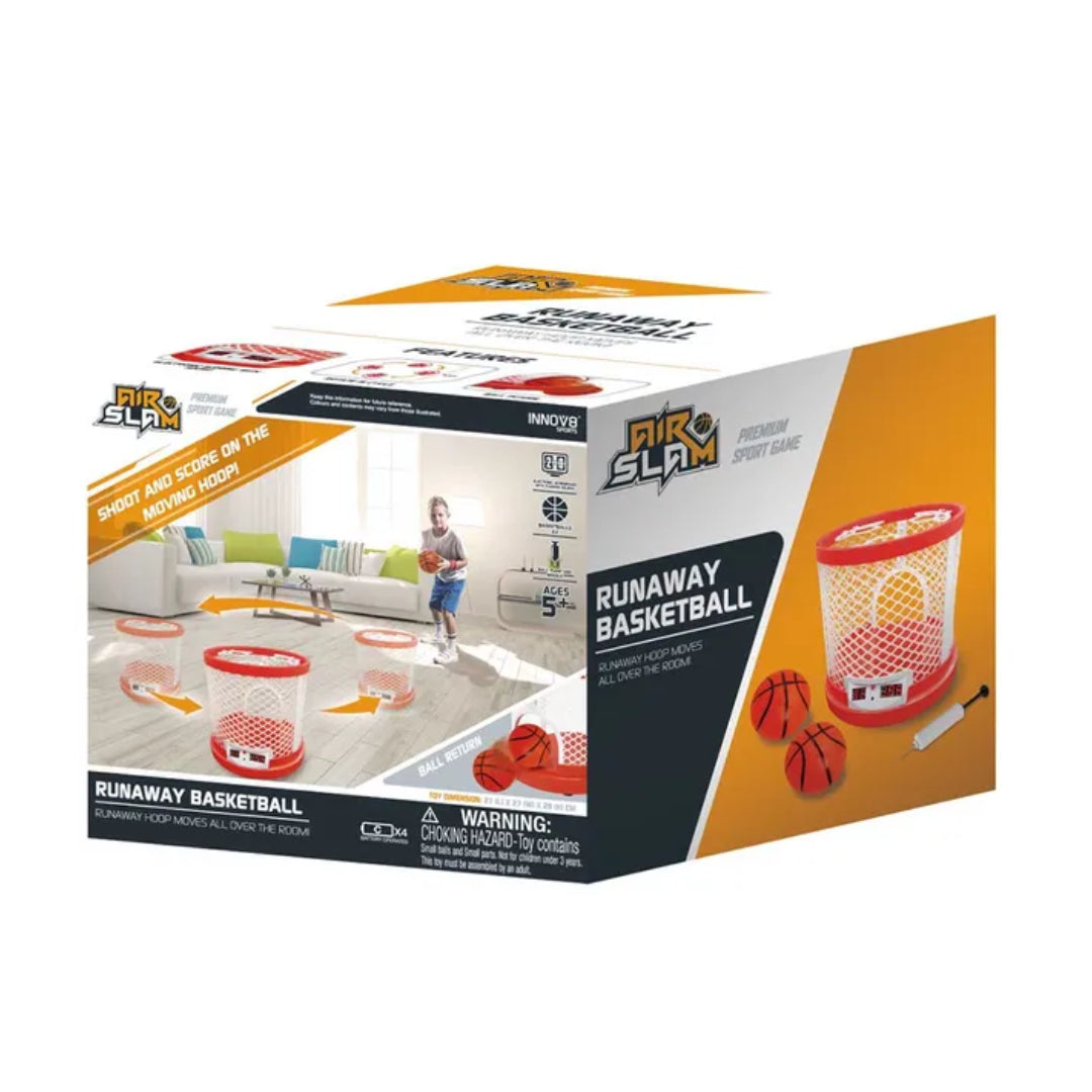 Shoot the mini balls as quick as you can to get the high score before the timer runs out! Play against family and friends or race against the clock to beat the high score! This indoor basketball game is great fun for players of all ages and comes with everything you need to play. The set includes Runaway mini hoop, mini basketballs, and air inflation pump with needle.