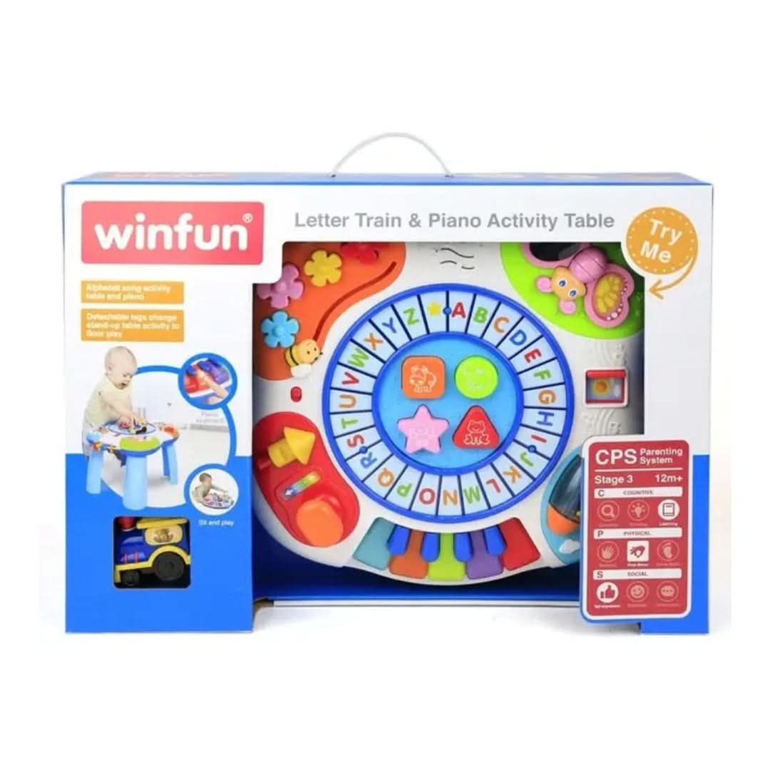 Train whistle, gearshift, spinner, sliding bee and flapping butterfly with fun phrases, sound effects, and music
