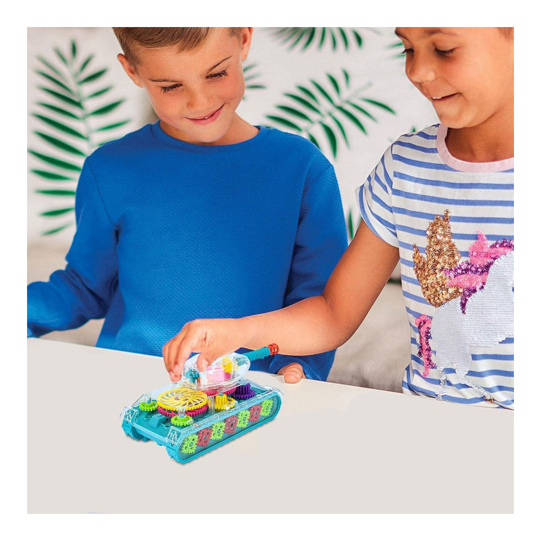 The tank body is made of clear plastic, allowing kids to see the colorful interlocking gears in motion. This not only sparks curiosity but also supports early STEM learning. -