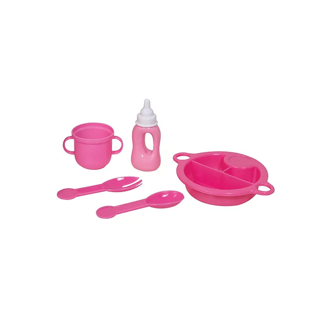 Inside the box, you'll find 1 transforming Highchair, 1 baby doll, 1 front baby carrier and 1 changing bag. They all come in a pretty pink design for even more fun!