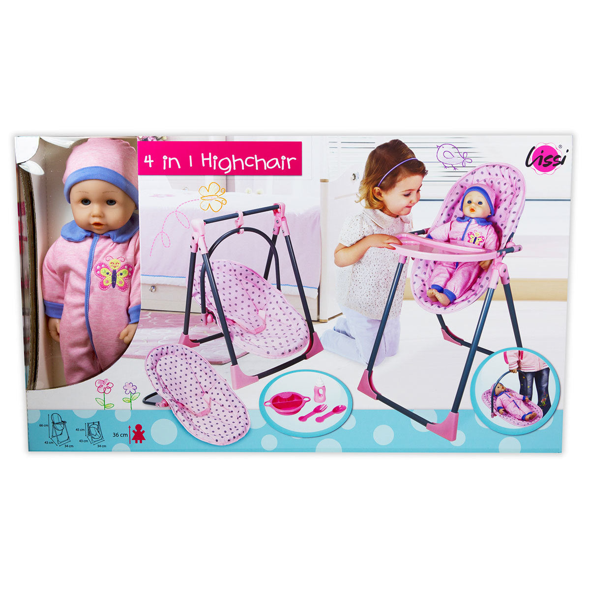Enjoy the best playtime ever with the 4-in-1 Baby Highchair and Doll from Lissi.