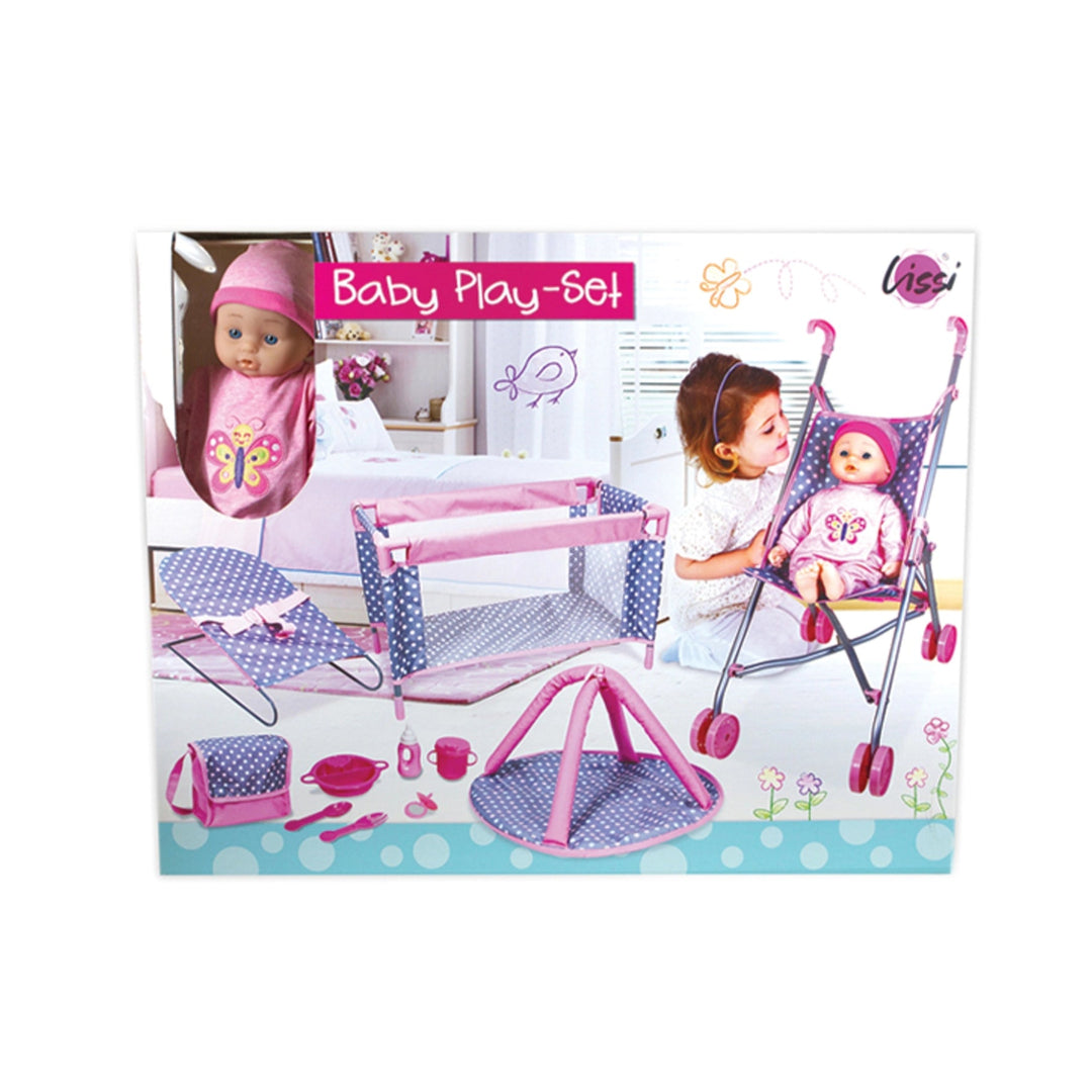 This 5 Piece Baby Play Set with 16" Doll from Lissi is a go-to set to start your child's doll collection. This set includes both a 16" baby doll as well as every accessory your child would want to care for her baby doll.