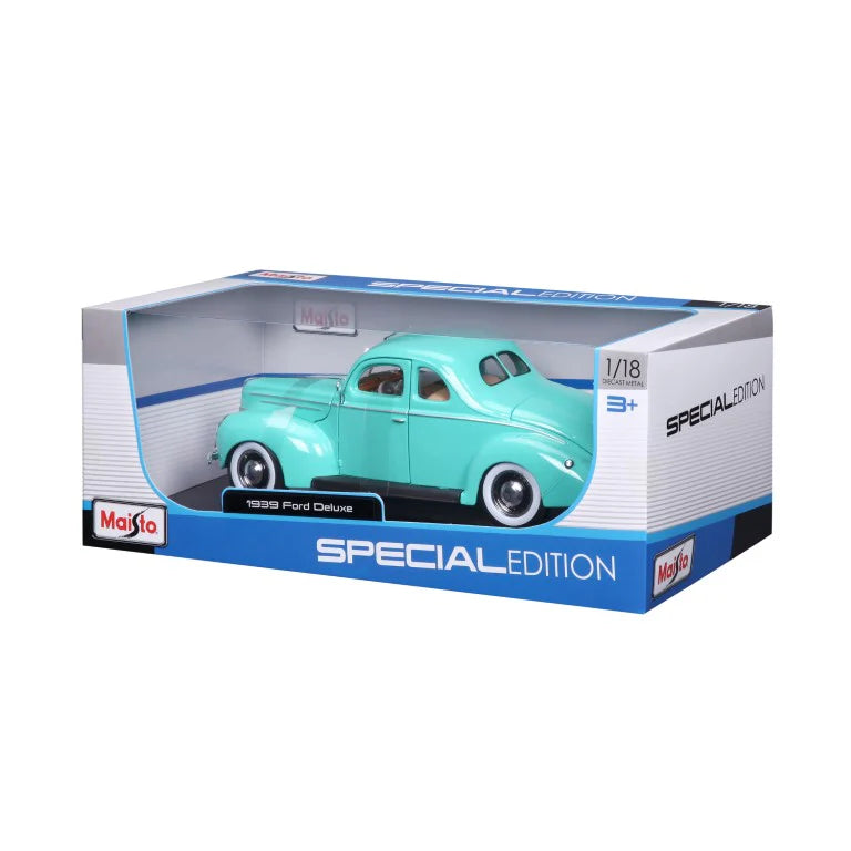Relive the grandeur of classic motoring with the 1:18 scale 1939 Ford Deluxe Coupe from Bburago Maisto. This replica in shimmering green is a masterpiece of detail and authenticity.