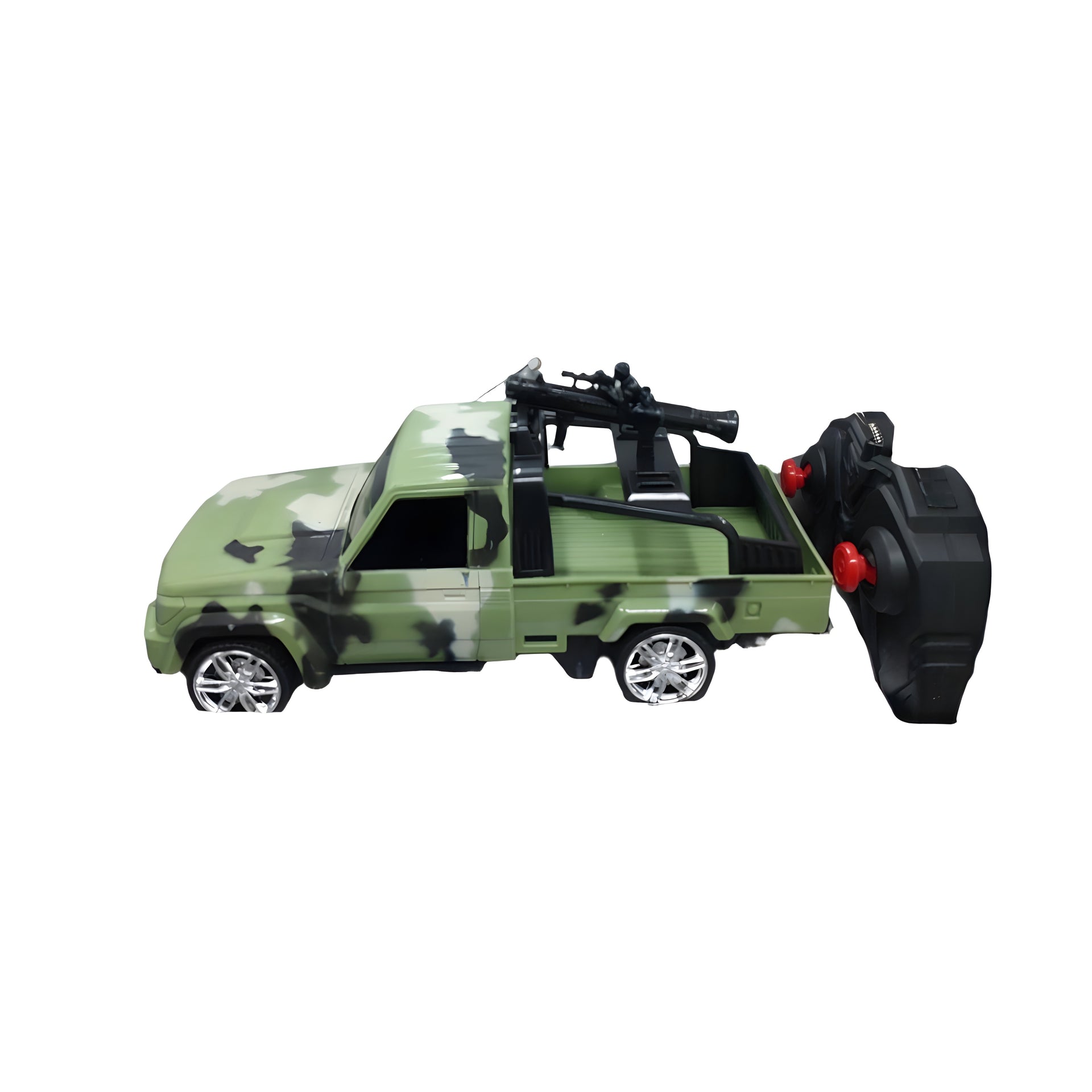 Unleash adventure and tactical missions with the MAX Military Pick-Up Truck, a 1:16 scale Radio-Controlled Model Car designed for young commanders and military enthusiasts. Engineered for realism and rugged play, this camouflaged military-style vehicle is packed with features that ignite imagination and action! Perfect for kids aged 3 years and up, the RC truck includes 4-channel remote control functionality, offering forward, backward, left, and right movement. Its military green camo design, mounted gear accessories, and shiny chrome-like wheels enhance its authentic military appearance. Whether navigating through backyard terrains or executing indoor rescue missions, this pick-up truck is built for adventure and makes a great gift for young boys and collectors alike. Key Features: