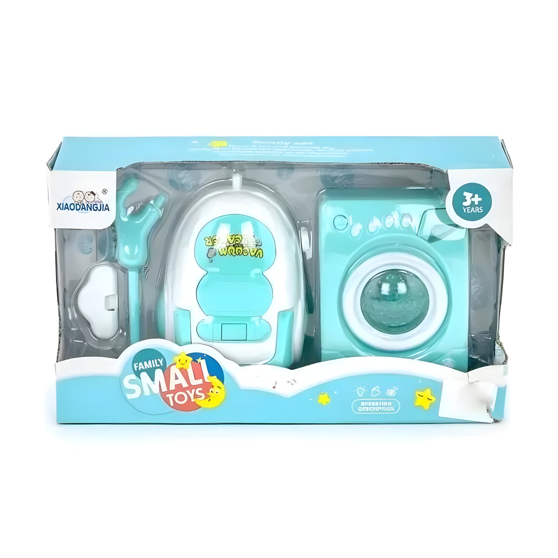 Mini Household Appliances Toy Set Battery Powered Vacuum Cleaner & Washing Machine (28.5x17x8 cm) Introduce kids to the fun of pretend play and everyday household routines with this Mini Household Appliances Set, designed for little helpers aged 3 years and up. This realistic and colorful toy set includes a vacuum cleaner and a washing machine, both powered by batteries to simulate real-life functionality. The battery operated features bring added excitement the vacuum cleaner lights up and produces suction-like sounds, while the washing machine spins for a lifelike wash cycle experience. It's the perfect toy for imaginative roleplay, encouraging responsibility and creativity in young children. Product Type: Battery-Powered Mini Household Appliances Includes: 1 Vacuum Cleaner & 1 Washing Machine Dimensions: 28.5 x 17 x 8 cm (package size) Power Requirement: 2 x AA batteries (not included) Age Recommendation: 3 years and older Material: Durable, child-safe plastic Functionality: Vacuum Cleaner: Light and sound effects Washing Machine: Rotating drum mimics real washing action Design: Compact, vibrant design with realistic details Benefits: Encourages imaginative play, fine motor skills, and understanding of household chores Let your child enjoy hours of interactive play while developing essential life skills with this delightful Mini Appliance Set a fun and educational gift for toddlers and preschoolers!