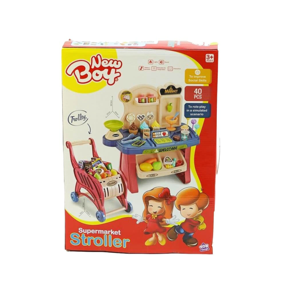 Introducing the New Boy Supermarket Stroller - a must-have for young shoppers and aspiring entrepreneurs! This realistic supermarket stand and trolley set come complete with 40 pieces of play food and groceries, providing endless fun and learning opportunities. With sound and light effects, this battery-operated stroller is convenient and portable for on-the-go play. Encouraging imaginative play and role-playing, it helps develop fine motor skills and hand-eye coordination in children aged 3 and up. Made of durable and safe materials, the New Boy Supermarket Stroller is the perfect addition to any little one's playtime adventures.