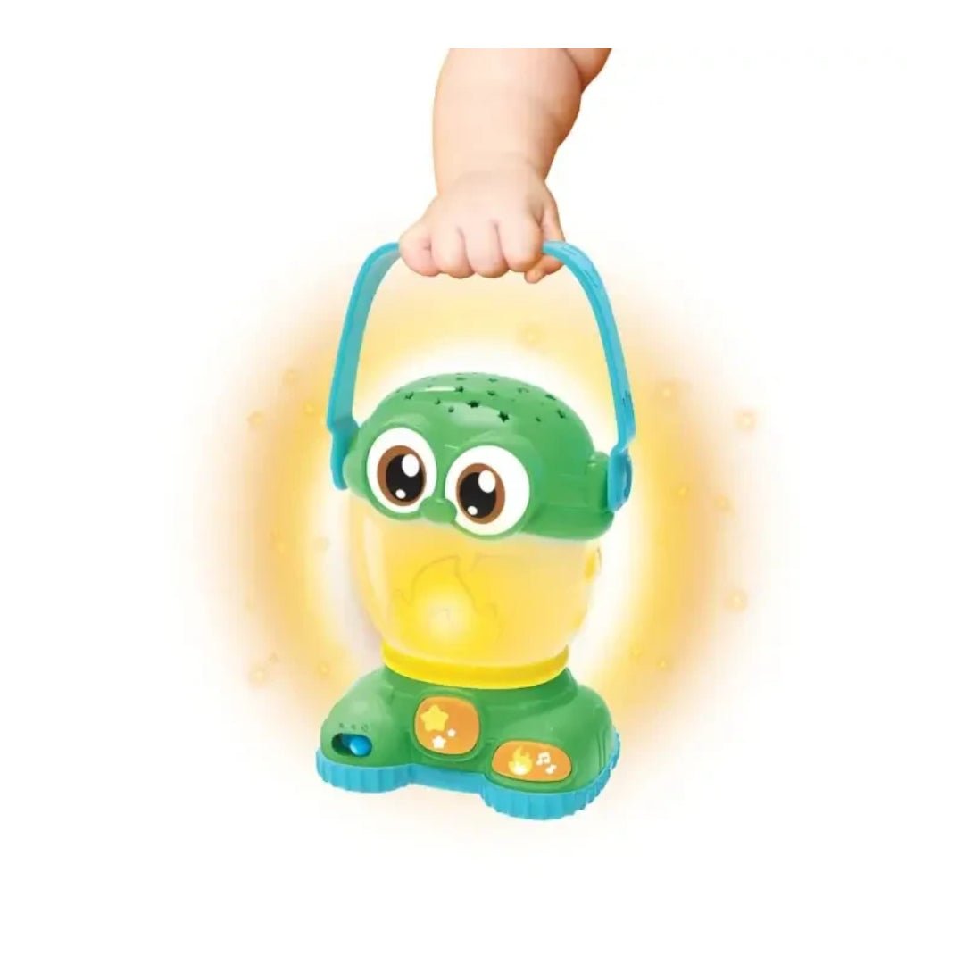 Camping lantern with pleasant melodies, soothing llulabies, sound effects, and light-up effects