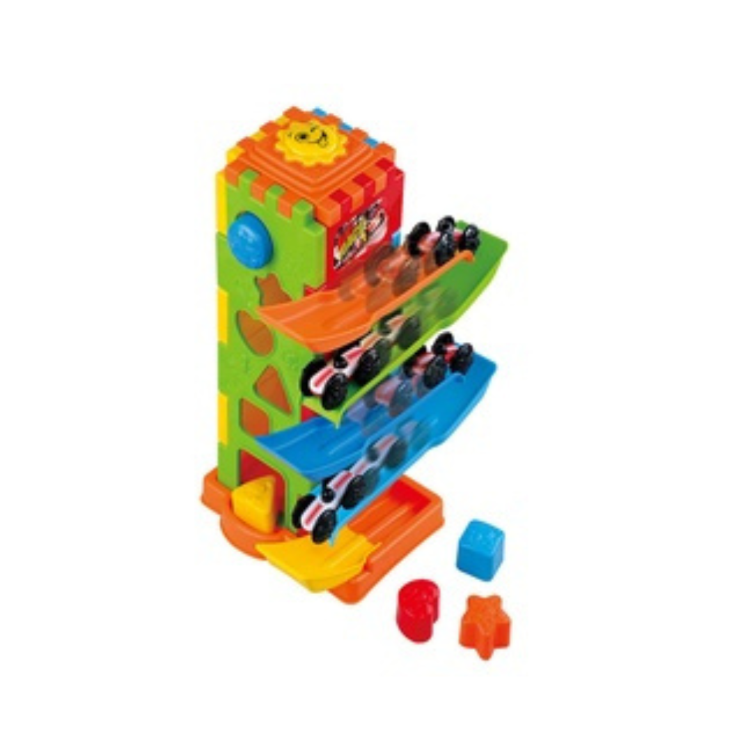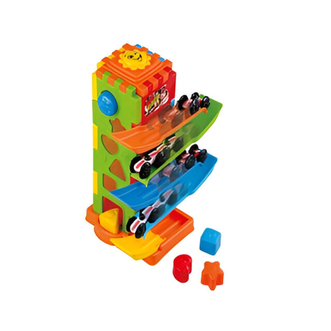 Engage your child's senses and foster skill development with the Play Go 5-in-1 Tower Challenge. This dynamic toy offers a multisensory experience, encouraging hand-eye coordination through cheerful sounds activated by the easy-to-press button. The vibrant and sturdy plastic components provide a valuable learning opportunity as children explore colors, shapes, and textures. The interactive tower design allows kids to sort various figures, enhancing cognitive skills, and then send a bear racing down different paths with the attached car track, adding an element of excitement. Designed for children aged 3 years and up, the Play Go 5-in-1 Tower Challenge promises both educational and entertaining playtime.