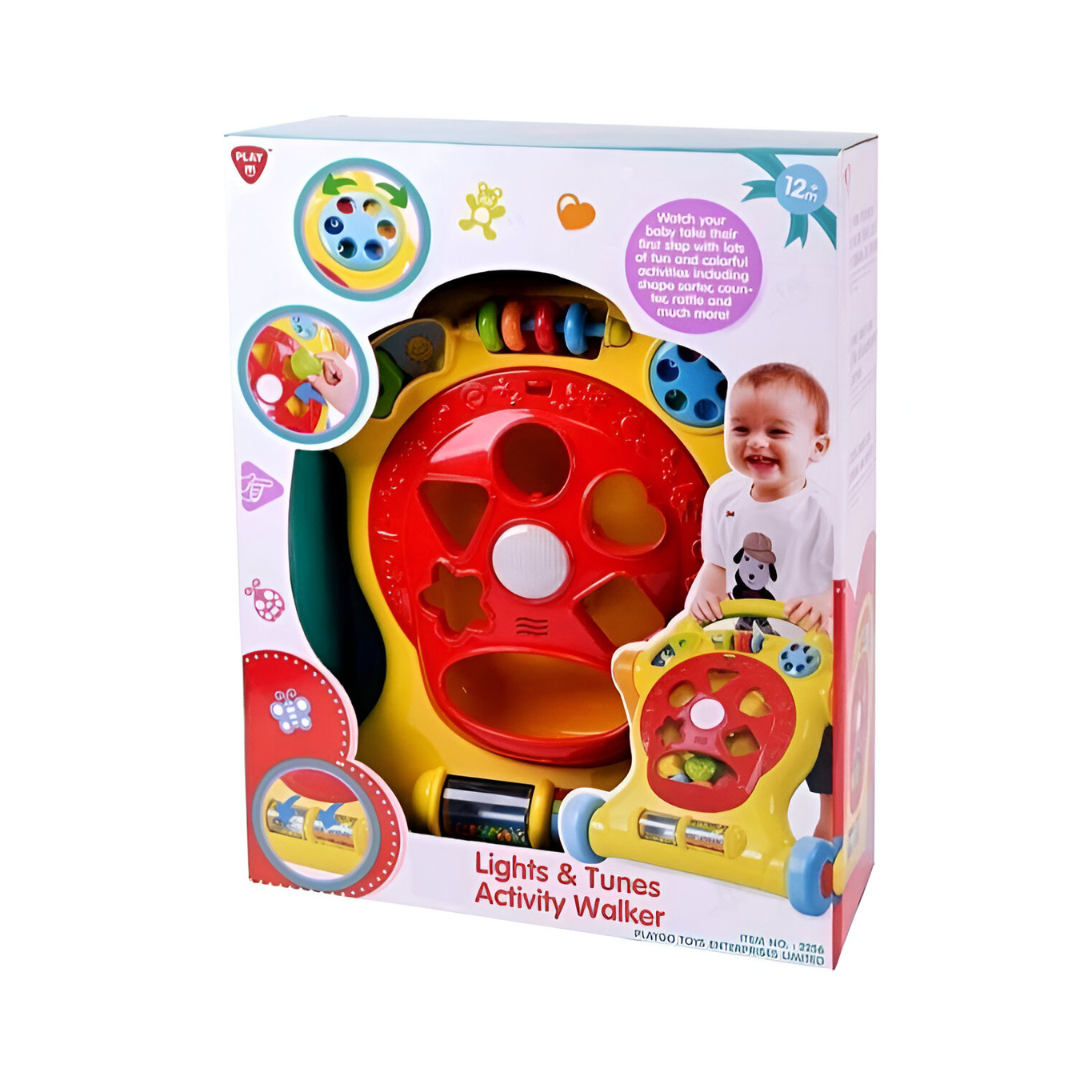 Transport your baby toddler to the interactive learning world of their imagination with the Lights & Tunes activity walker from Playgo toys.
