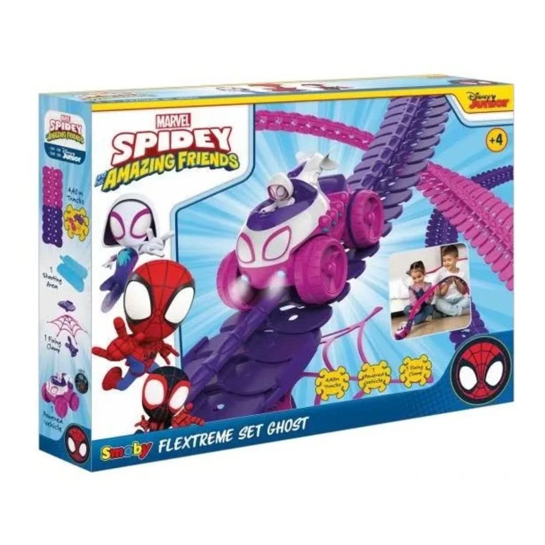 It's Spidey time! The Spidey FleXtreme Spin set features the cool design of the popular preschool series Spidey and his super friends. Dive into the fantastic world of Smoby FleXtreme with superhero Miles Morales! Thanks to the flexible tracks, you can come up with a variety of racing tracks.