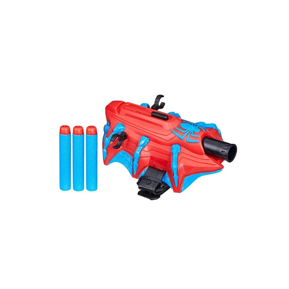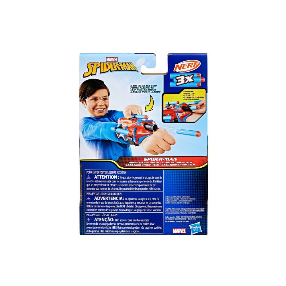 Spidey senses meet NERF power with this Marvel Spider-Man Thwip-Tech Blaster! Kids 5 and up can strap on web blaster and pretend to TWHIP just like their favorite wall-crawling super hero. This role play toy includes 3 NERF darts, 2 c-clips on either side of the blaster for extra dart storage, and iconic design and deco inspired by the Marvel universe that kids know and love. Load up a dart in the front of the blaster, then press button to blast! Spider-Man web blaster makes a great action-packed Marvel gift for boys and girls to mark holidays, special occasions, or celebrating milestones. Look for other Spider-Man role play toys, action figures, and playsets for even more thwip action fun!