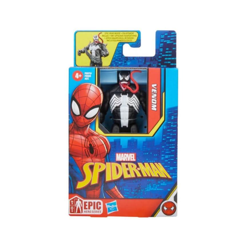 Kids can imagine unleashing web-slinging adventures and battles with their favorite Spider-Man heroes and villain! This Marvel Venom action figure is part of the Epic Hero Series and features entertainment inspired design with poseable limbs, and a coordinating accessory for pretend epic hero versus villain battles! This 4-inch scale Venom action figure can't be missed and will be the perfect gift for kids or a great addition to any Marvel superhero toy collection.