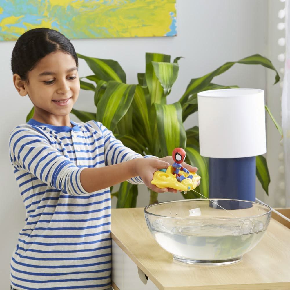 It’s Spidey time! This Marvel Spidey and His Amazing Friends toy is ready to splash into water play. The 4-inch articulated Spidey action figure can really sit in the floating water-web raft, so girls and boys ages 3 and up can imagine all kinds of aquatic Spidey adventures! Kids can easily fill the reservoir in the raft by squeezing underwater, than launch the water by squeezing again. A great pool toy or water table toy, this fun Super Hero figure and vehicle set makes a great anytime gift for kids who love the preschool Marvel show, Spidey and His Amazing Friends.