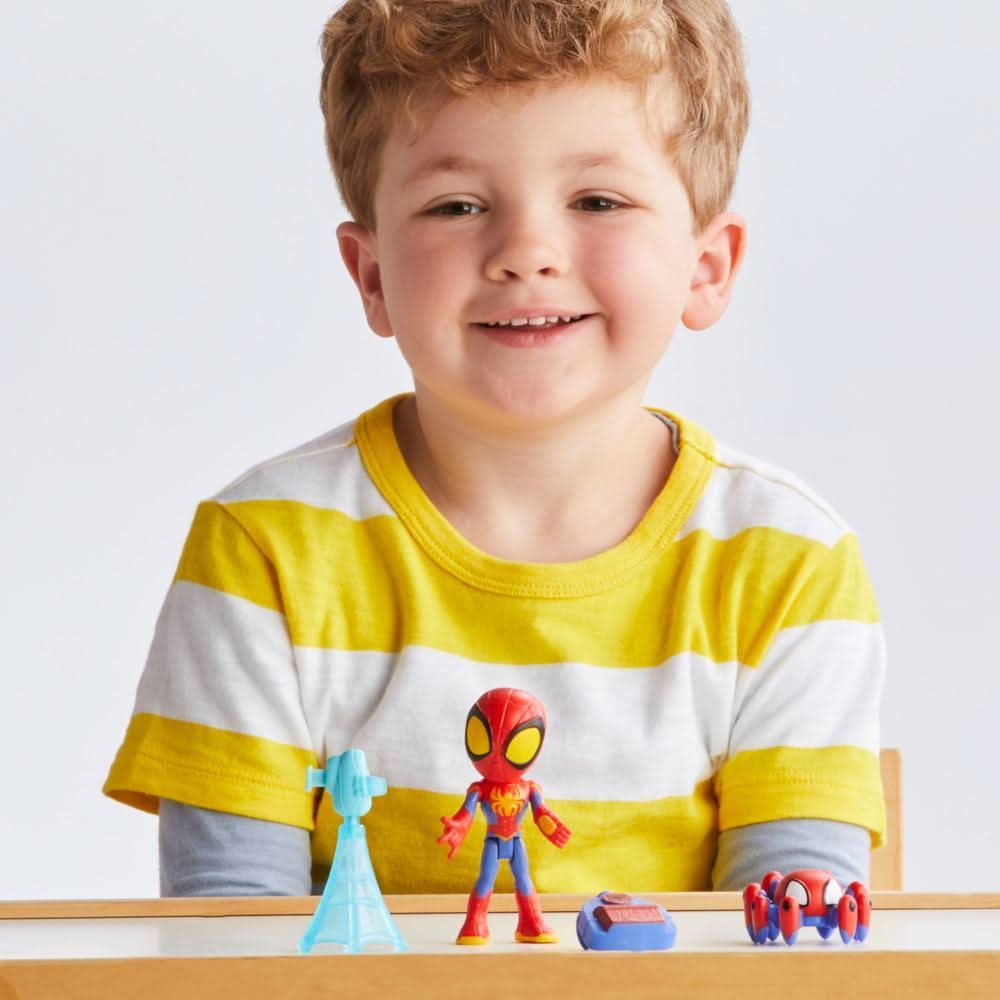 Web out with Team Spidey with this Spidey and His Amazing Friends Web-Spinners toy! Preschoolers can imagine epic adventures as Spidey, working with Team Spidey and taking down their enemies with this 4-inch-scale action figure with accessories. This toy includes a backpack, a web-spinning accessory, and sidekick bot to use for epic web-slinging adventures! With an updated suit inspired by the preschool Marvel show, kids will love creating epic adventures with Team Spidey. This exciting Spidey and His Amazing Friends Web-Spinners toy is perfect for little kids who love big adventures!